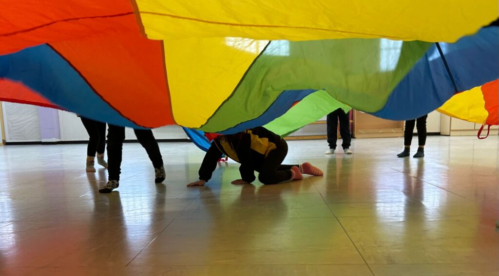 L’alumnat de Xaloc i Ponent ha gaudit d’una sessió de psicomotricitat amb el paracaigudes de colors com a protagonista. A través de jocs de passar per sota, fer-lo volar i fer saltar pilotes, els infants han experimentat amb el moviment, el ritme i l’espai. Aquestes propostes han afavorit la coordinació motriu, la percepció corporal i el control del propi cos. Alhora, s’ha potenciat el treball cooperatiu, l’atenció compartida i el respecte pels torns, tot convertint el joc en una experiència d’aprenentatge vivencial i significativa.
