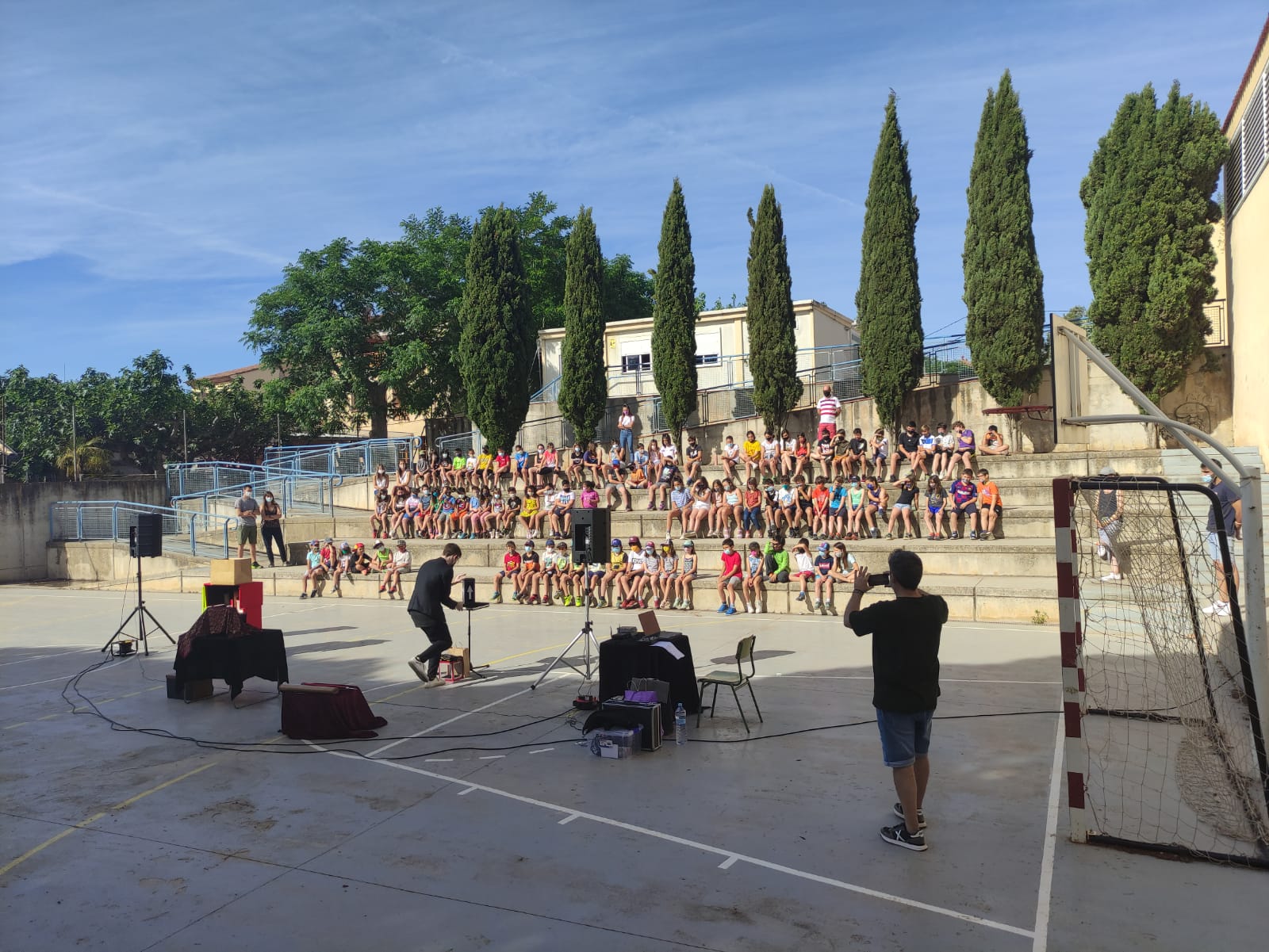 Hem arribat al final d’un curs ben atípic, vam estar pensant de poder celebrar-ho totes i tots junts, però la situació es complicava una mica així que vam cercar altres maneres d’oferir als nostres fills i filles un moment especial i diferent. Així va ser com vam programar un espectacle de màgia per als nens i nenes de primària i una festa d’animació i bombolles per a infantil, a més d’oferir l’esmorzar i un petit obsequi.