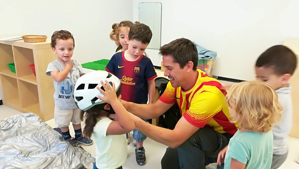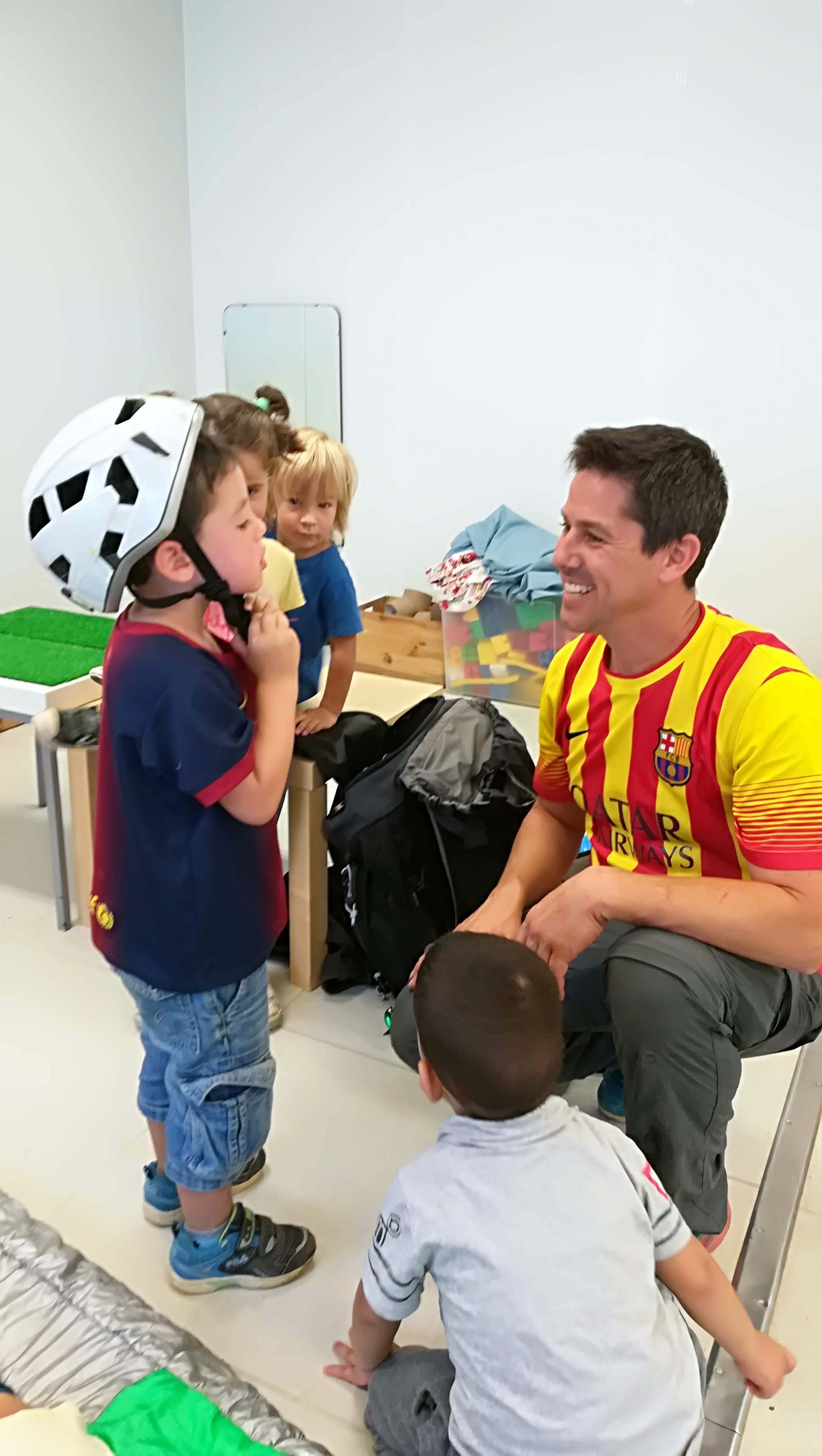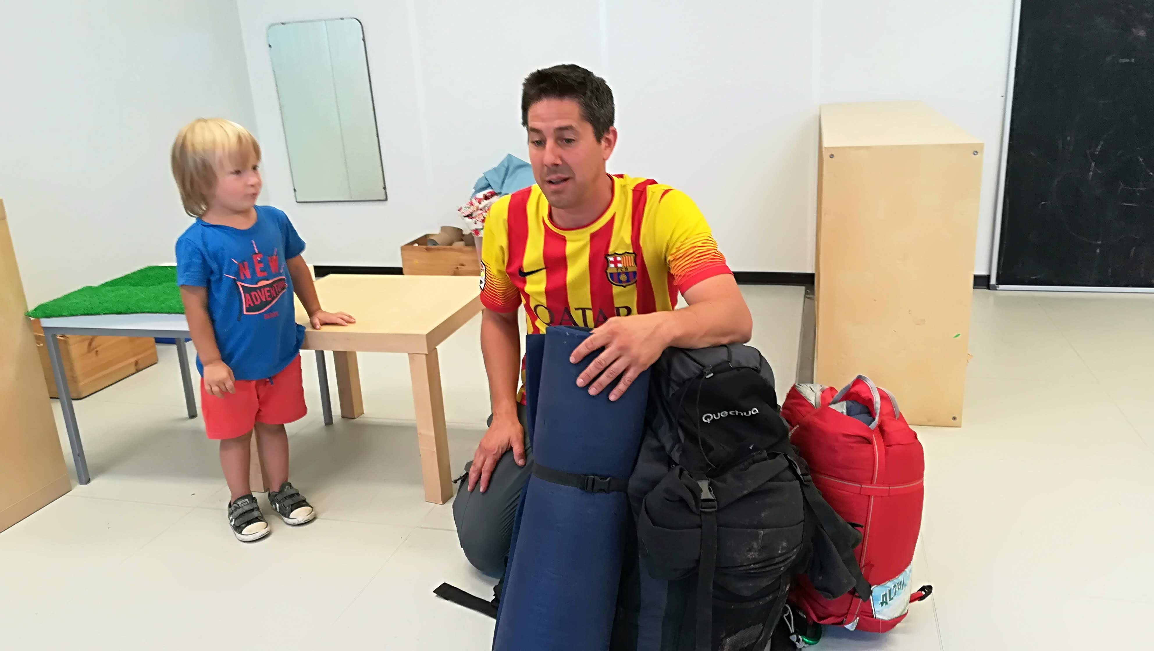 EN RAUL, EL PARE D’EN DANI, ENS FA UNA VISITA SORPRESA A LA CLASSE DE P3. VE MOLT CARREGAT! PORTA UNA MOTXILLA I MICA EN MICA ENS ENSENYA TOT EL QUE PORTA A DINS. ENS EXPLICA QUE HA PUJAT A MONTSERRAT I HA PARTICIPAT EN L’ENCESA DE LES LLUMS, EL SEU GRUP HA ENCÈS UN LLUM DURANT TOTA LA NIT. ENS MOSTRA COM HA DORMIT: SOBRE UNA MÀRFEGA I DINS D’UN SAC DE DORMIR. ENS DEIXA PROVAR COM S’HI DORM. ENS ENSENYA EL CASC PER PROTEGIR-SE DE LES PEDRES I L’ARNÉS DE SEGURETAT. DE DINS LA MOTXILLA HA TRET UNA COSA MOLT IMPORTANT: UNA BOSSA D’ESCOMBRARIES. I ENS EXPLICA QUE MENTRE PUJAVEN LA MUNTANYA HAVIEN TROBAT DEIXALLES PEL CAMÍ I LES HAVIEN RECOLLIT, PERQUÈ LA MUNTANYA HA D’ESTAR SEMPRE BEN NETA.