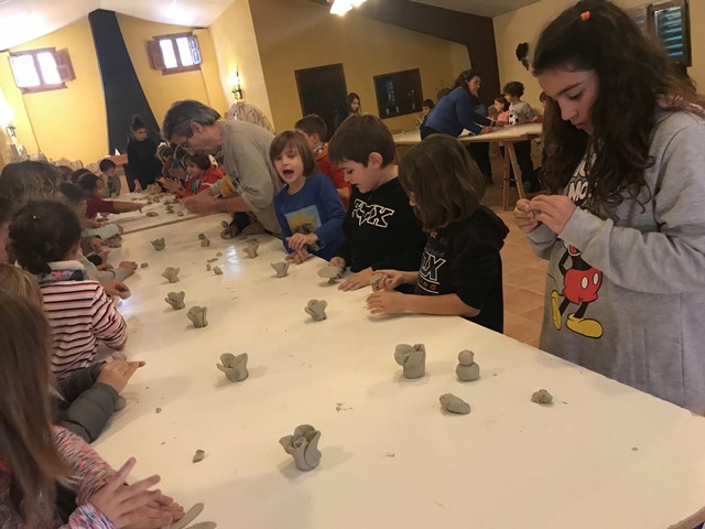 Al migdia vam anar a la casa Valldeperas,el taller d’un terrisser. Allí vam dinar i vam poder aprendre com funcionava l’ofici i, finalment, vam realitzar un taller en el que vam fer figuretes de fang.