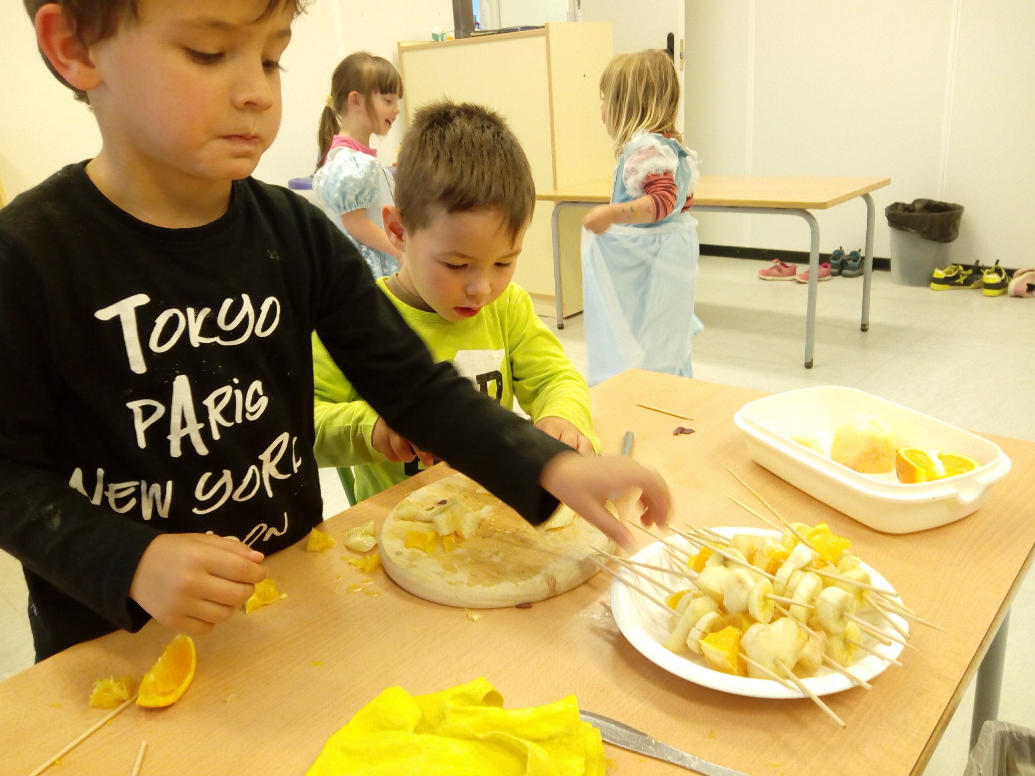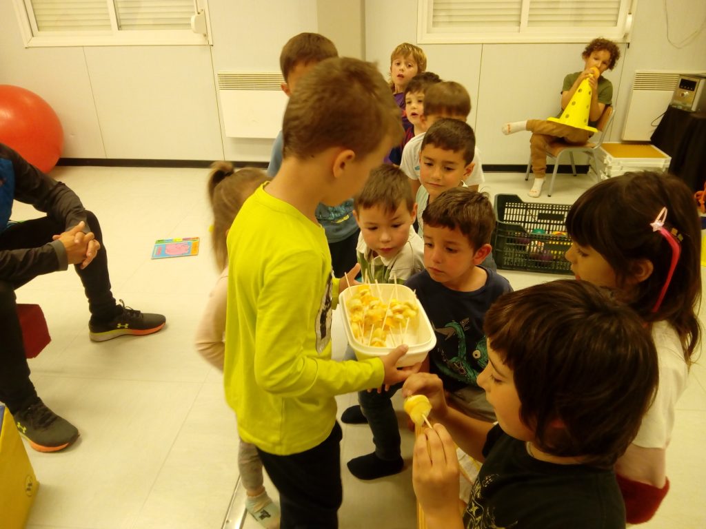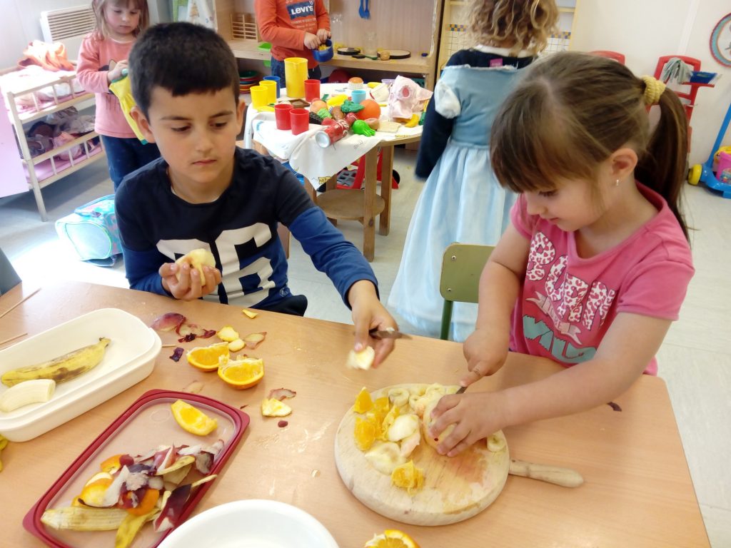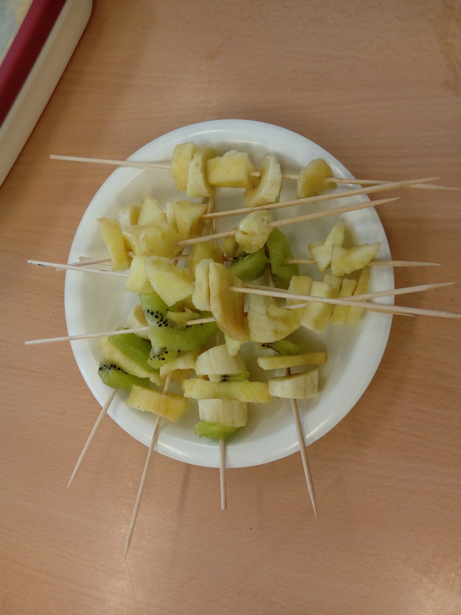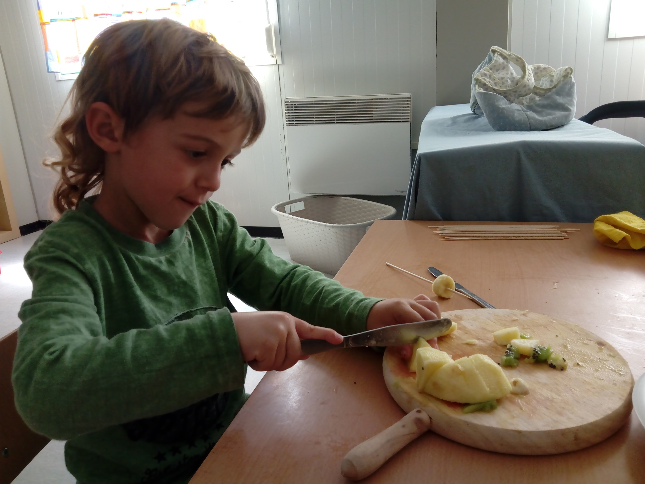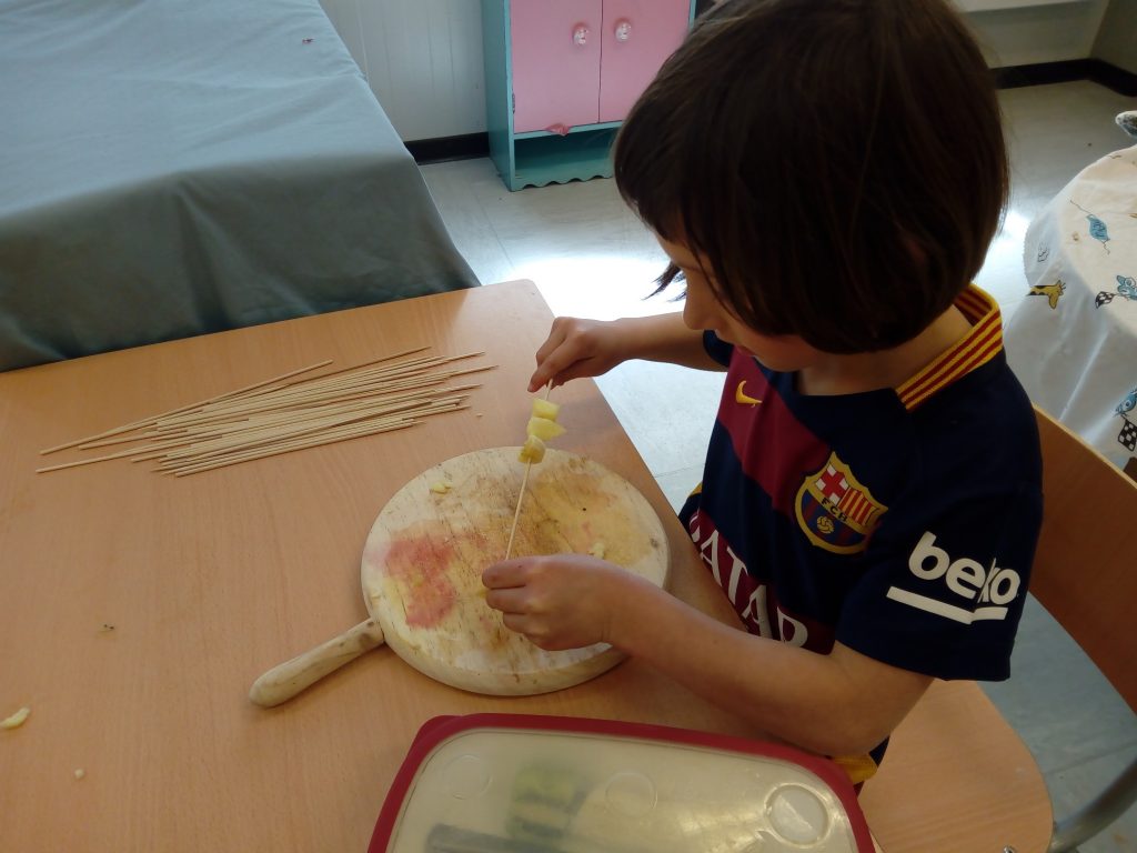 A l’espai “Món Imaginari”, hem començat a fer brotxetes de fruita! Cada dilluns i dimecres a la tarda, els infants que vénen a aquest espai tallen la fruita i la preparen. Alguns fins i tot la pelen!