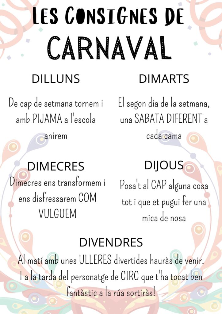 cArNesTolTes admin18/02/22 Benvolgudes famílies, avui hem rebut la visita del rei i la reina carnestoltes per tant ja podem dir que estem de carnaval! Ens han portat les consignes que haurem de seguir la setmana que ve per tal de tenir-los ben contents.