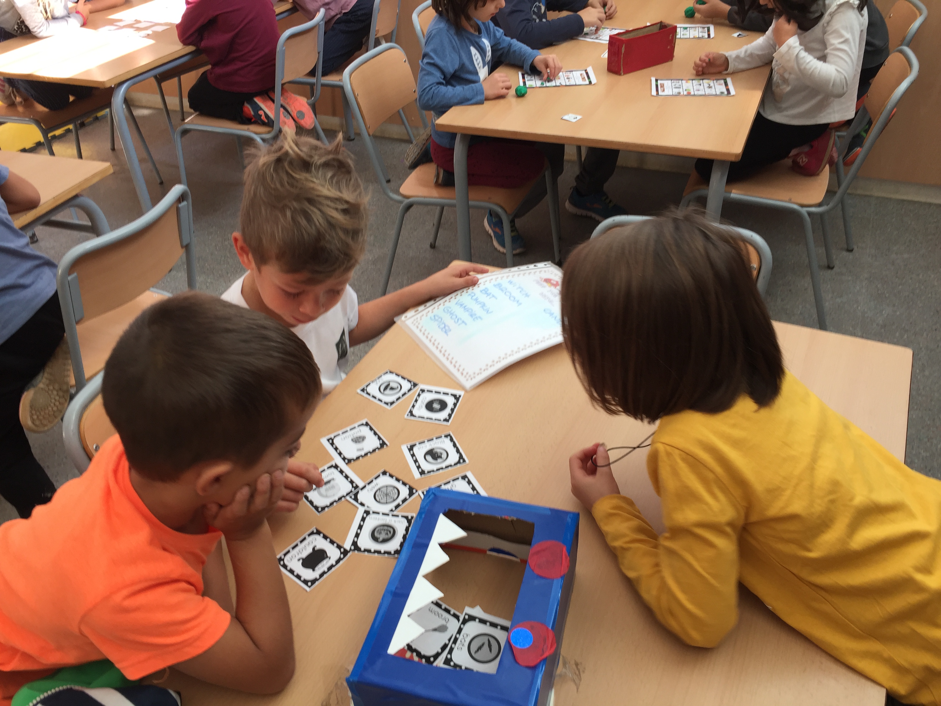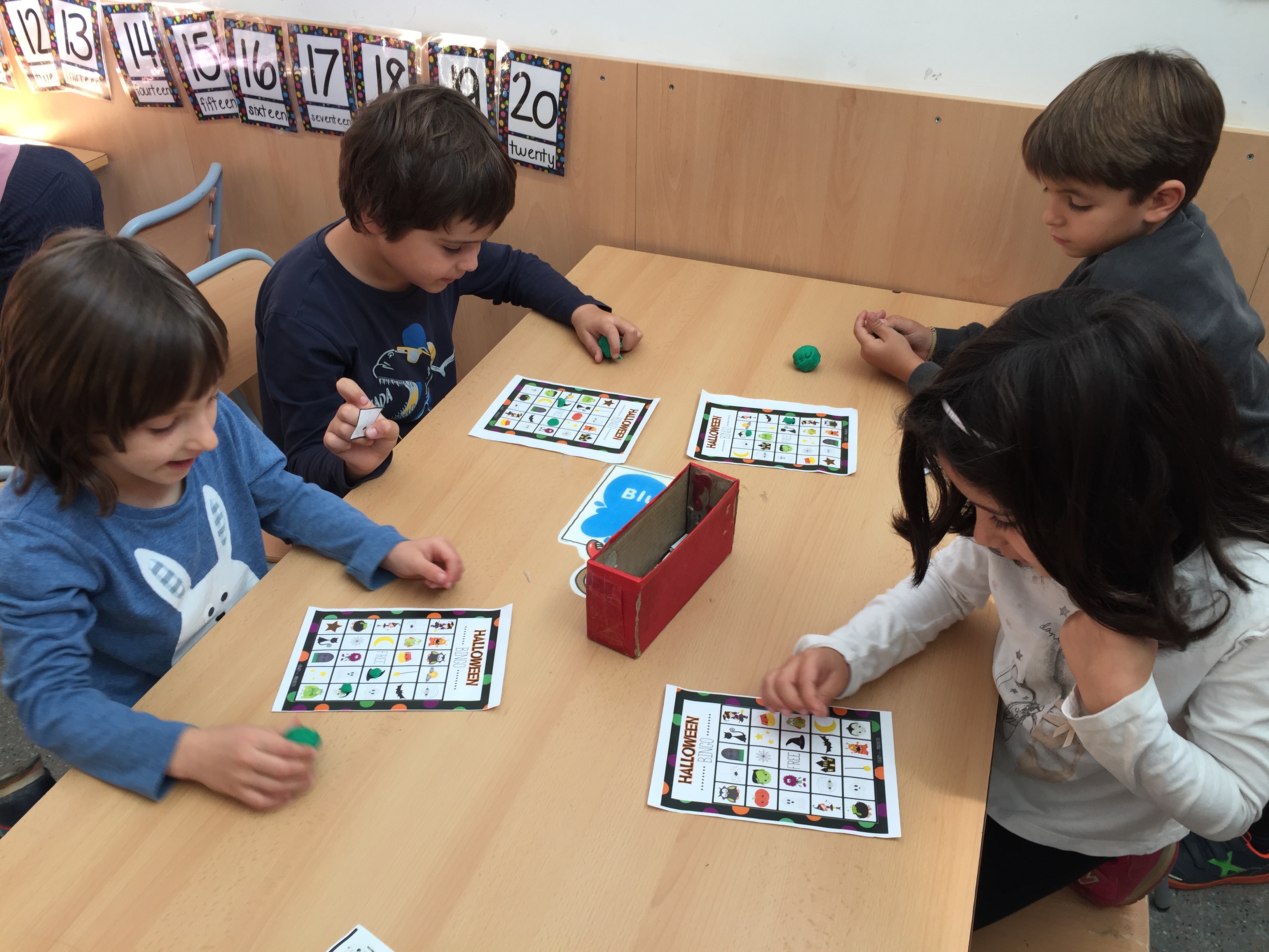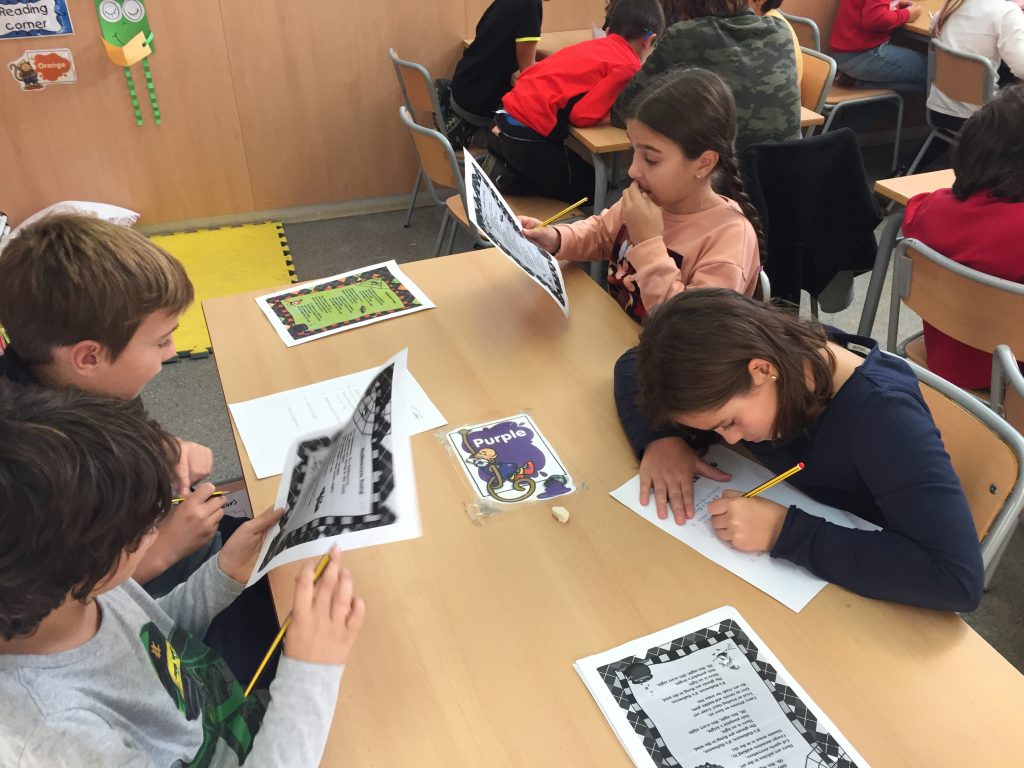 A cada taula hi havia alguna activitat diferent i cada cert temps anaven canviant i rotant per poder-les fer totes. Writings, listenings, speakings i també algun joc relacionat amb la festa.