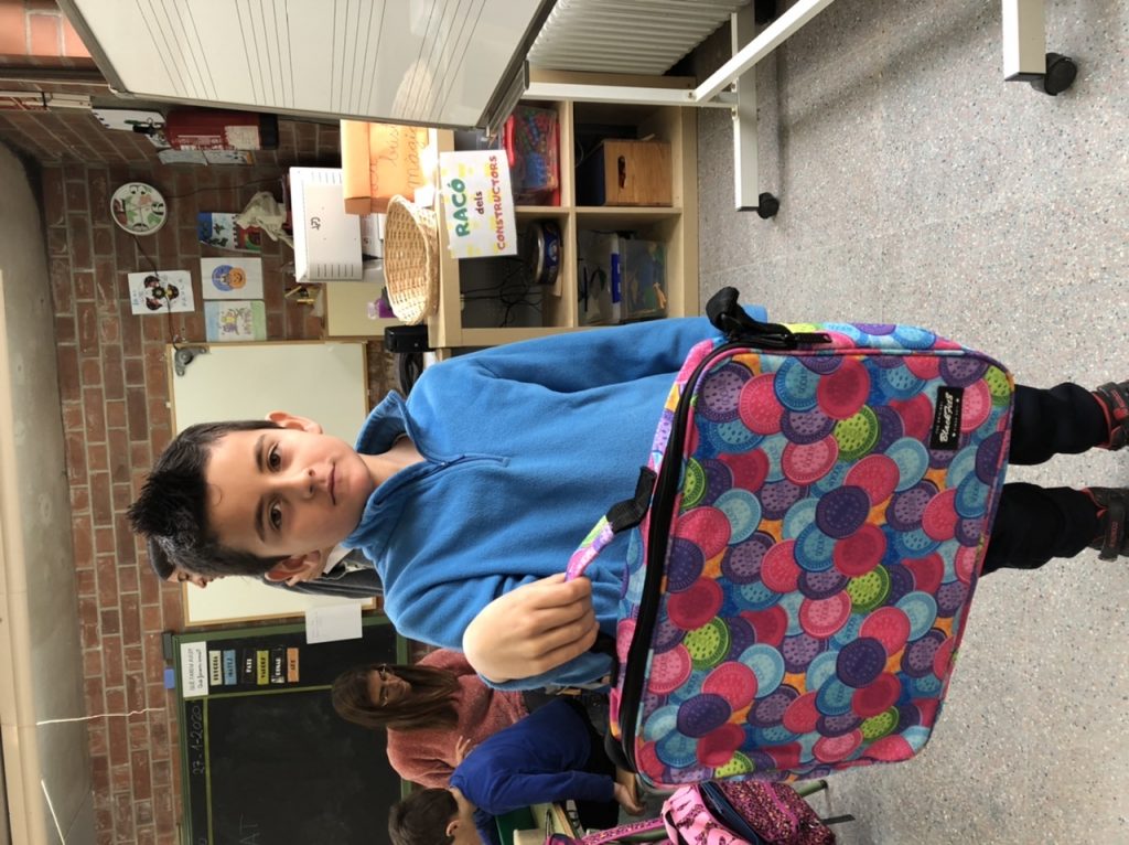 Aquest mes de gener la Traveller Backpack, la motxilla viatgera d’anglès ja ha començat a visitar l’alumnat de 1r i 2n. Es tracta d’una motxilla plena d’experiències en anglès: cançons, videos, contes, jocs únics i alguna feina escrita. Cada setmana dos infants de cada curs se’n porten la motxilla a casa per treballar-la amb les famílies i mostrar tot el que s’està duent a terme a l’escola. Ens encanta la motxilla perquè la veiem com una oportunitat d’introduir l’anglès dins de l’entorn familiar, i pot ser que s’hi quedi en forma d’experiència, de ganes d’escoltar més cançons en anglès o veure més dibuixos en aquesta llengua.
