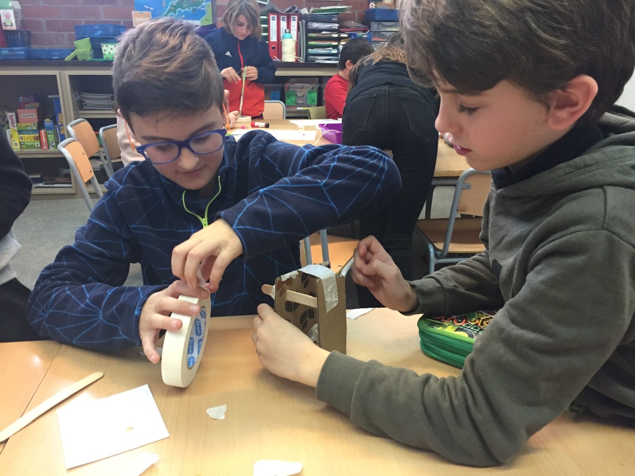 A la Comunitat dels Grans, en grups reduïts l’alumnat anirà utilitzant aquesta metodologia durant aquest segon trimestre, experimentant i creant seguint els processos científics. Amb un material concret i reduit i de forma lliure han de dissenyar i construir diversos elements: