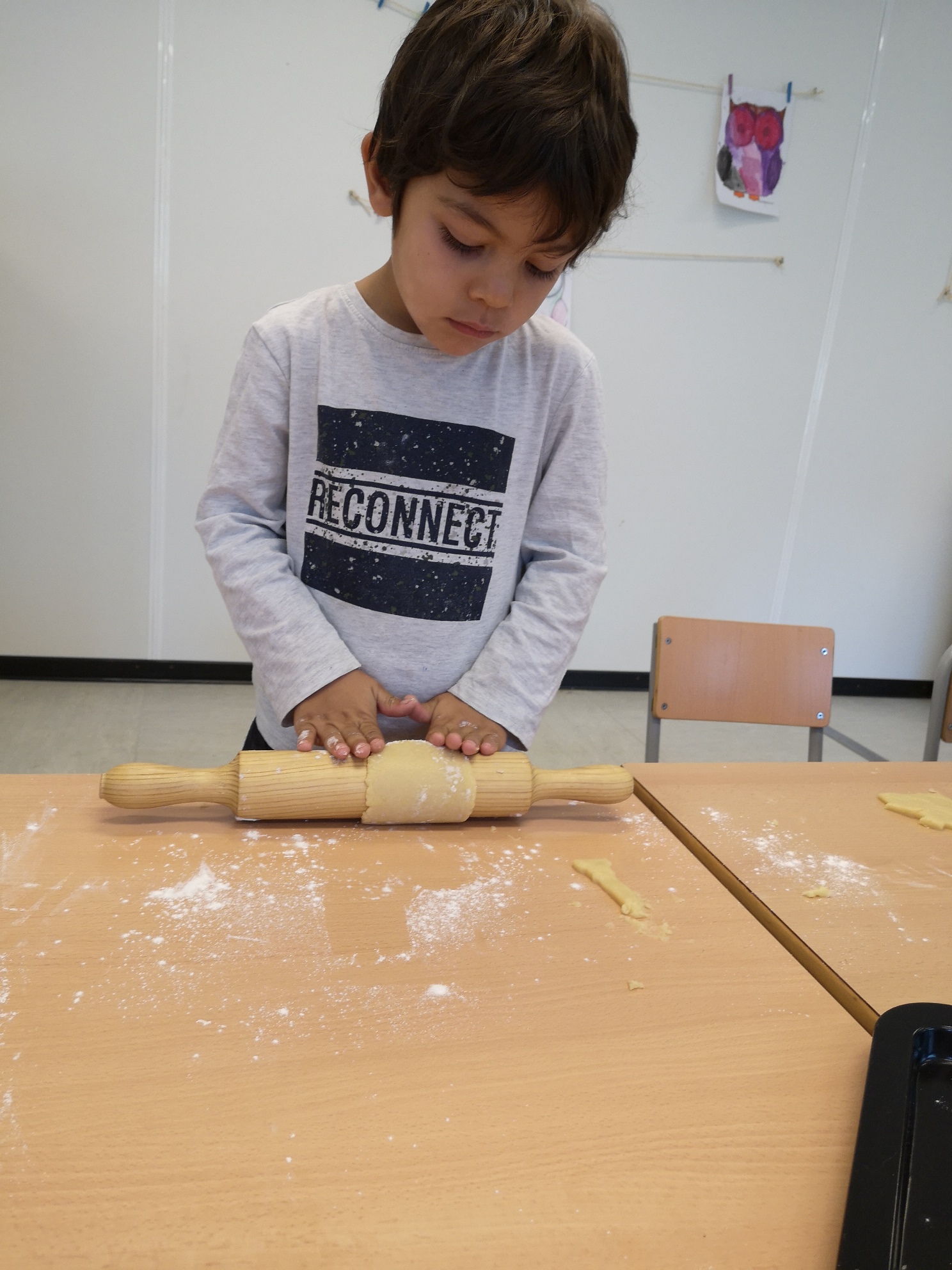 PER FER LES GALETES HAVÍEM D’ESTIRAR LA MASSA AMB ELS CORRONS I DESPRÉS FER FORMES AMB ELS MOTLLES. N’HI HAVIA DIFERENTS PER TRIAR: DE CARBASSA, DE BRUIXA, DE GAT, DE CASA, DE GORRO DE BRUIXA…