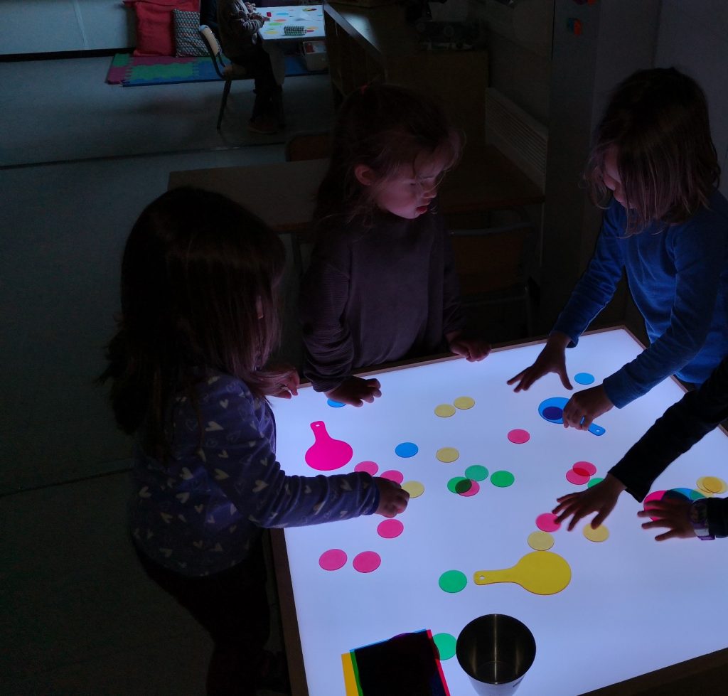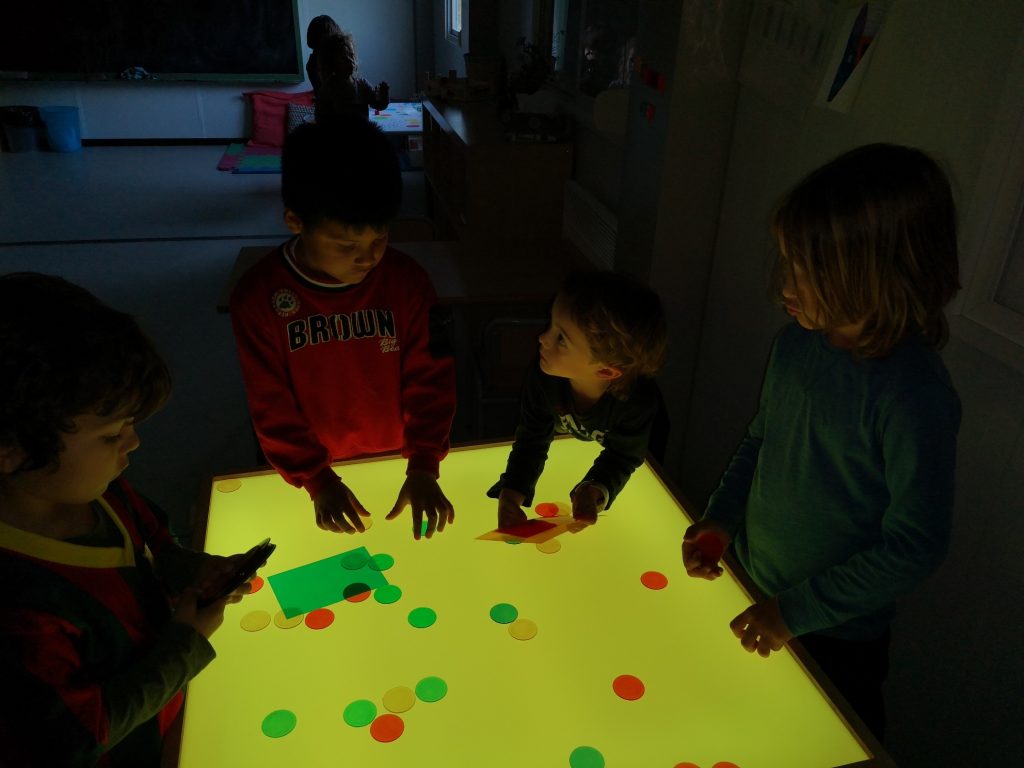 Els infants de la comunitat de petits estem molt contents, perquè gràcies a l’AMPA de l’escola, ja tenim taules de llum!