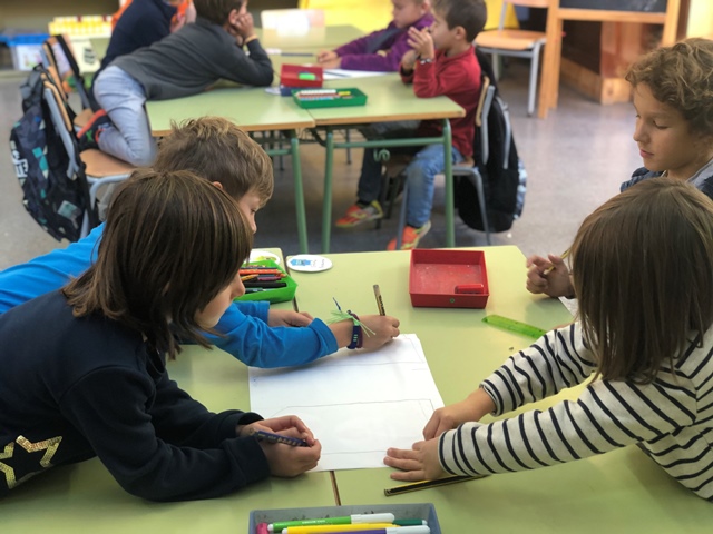 Els nens i nenes de la classe de 1r ens estem introduint a la forma de treballar cooperativa; ens organitzem en petits grups de treball per tal d’aconseguir metes i objectius comuns.