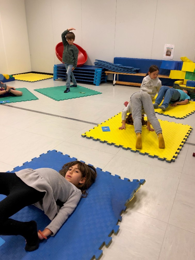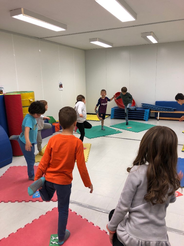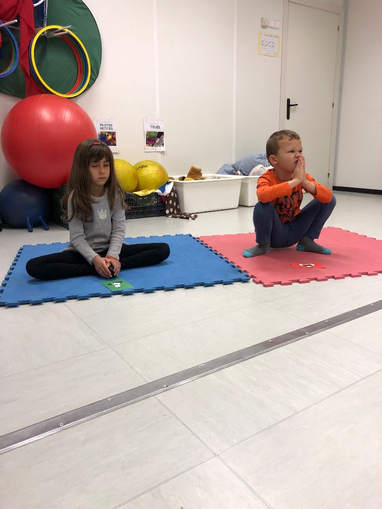 Durant les classes de psicomotricitat hem realitzat unes sessions de yoga amb els alumnes de P5. Aquestes sessions s’han portat a terme a través d’un joc de cartes, anomenades YOGUITOS. En aquestes sessions s’adapta la disciplina per als més petits. El yoga és una disciplina que combina exercicis de relaxació, respiració, concentració i meditació. Els beneficis són múltiples: proporciona salut, benestar i ajuda a desenvolupar la consciència corporal, flexibilitat i força dels infants.