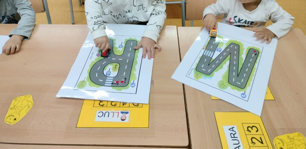 Entenem la lectura i l’escriptura com una eina de comunicació. Comencem a I3 a partir de la identitat (el propi nom) i els sons, evolucionant de manera funcional fins a la introducció de la lletra lligada a I5, sempre respectant el procés maduratiu i fomentant el plaer de descobrir el codi escrit.