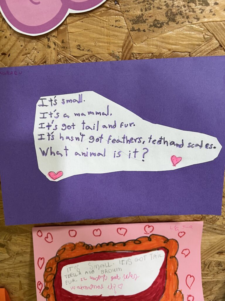 Then, each student wrote a description of their favourite animal. Finally, we played the game by reading the different descriptions and trying to guess which animal it was.