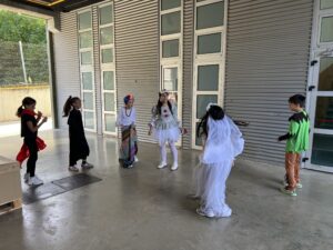 - Trick or Treat (3r de Primària): Els nostres alumnes més petits de Cicle Mitjà esdevenen cantaires i visiten totes les aules de l’escola per compartir la tradicional cançó de “Trick or Treat”, encomanant l’esperit de la festa a la resta de companys i companyes.