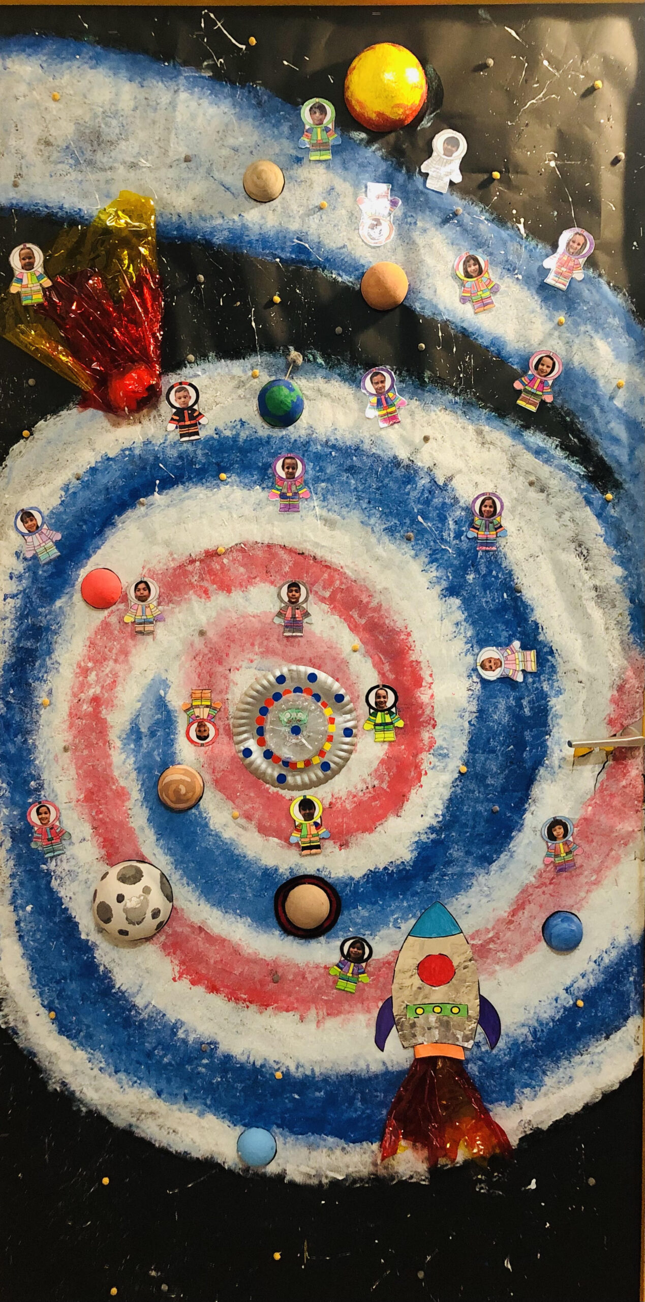 Un cop triat el nom de la classe, ens vam dedicar a portar material que tenim a casa i que parli sobre l’Univers i també, vam pensar com decorar la nostra porta.