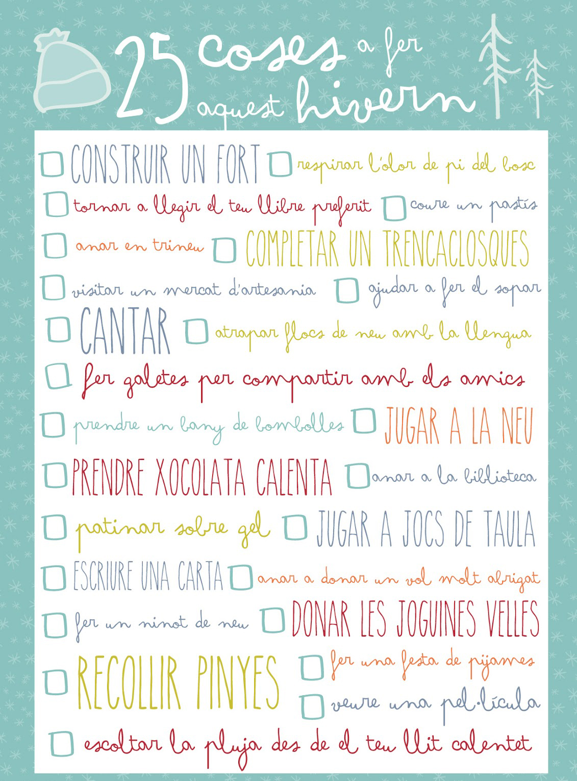 Us pengem un nou llistat de propostes per fer els caps de setmana d’hivern o alguna tarda entre setmana, aprofitant que no es poden realitzar activitats extraescolars presencials en grup. Podeu compartir les experiències amb la vostra classe fent una foto o vídeo de l’activitat escollida. Vinga, som-hi!!
