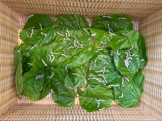 Cada dia els vam anar alimentant amb fulles de morera que agafàvem del nostre pati o portaven les famílies.
