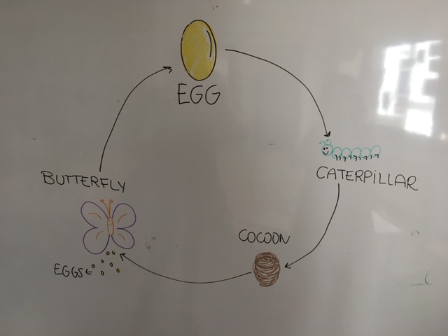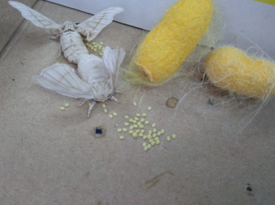 Aquesta va posar uns ous que hem estat guardant fins que ara, quan ha començat la primavera han nascut uns cucs de seda petitíssims que podran seguir el seu camí i realitzar un altre cop el seu propi cicle vital.