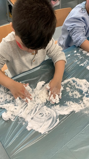 A l’aula d’I3 hem fet una activitat molt divertida i sensorial. Hem barrejat espuma d’afaitar amb bicarbonat i… sorpresa! Hem creat neu artificial.