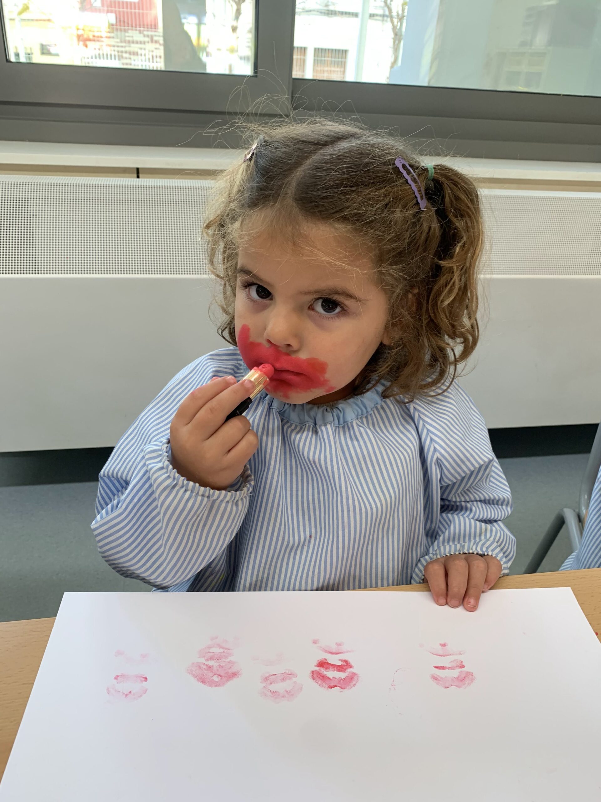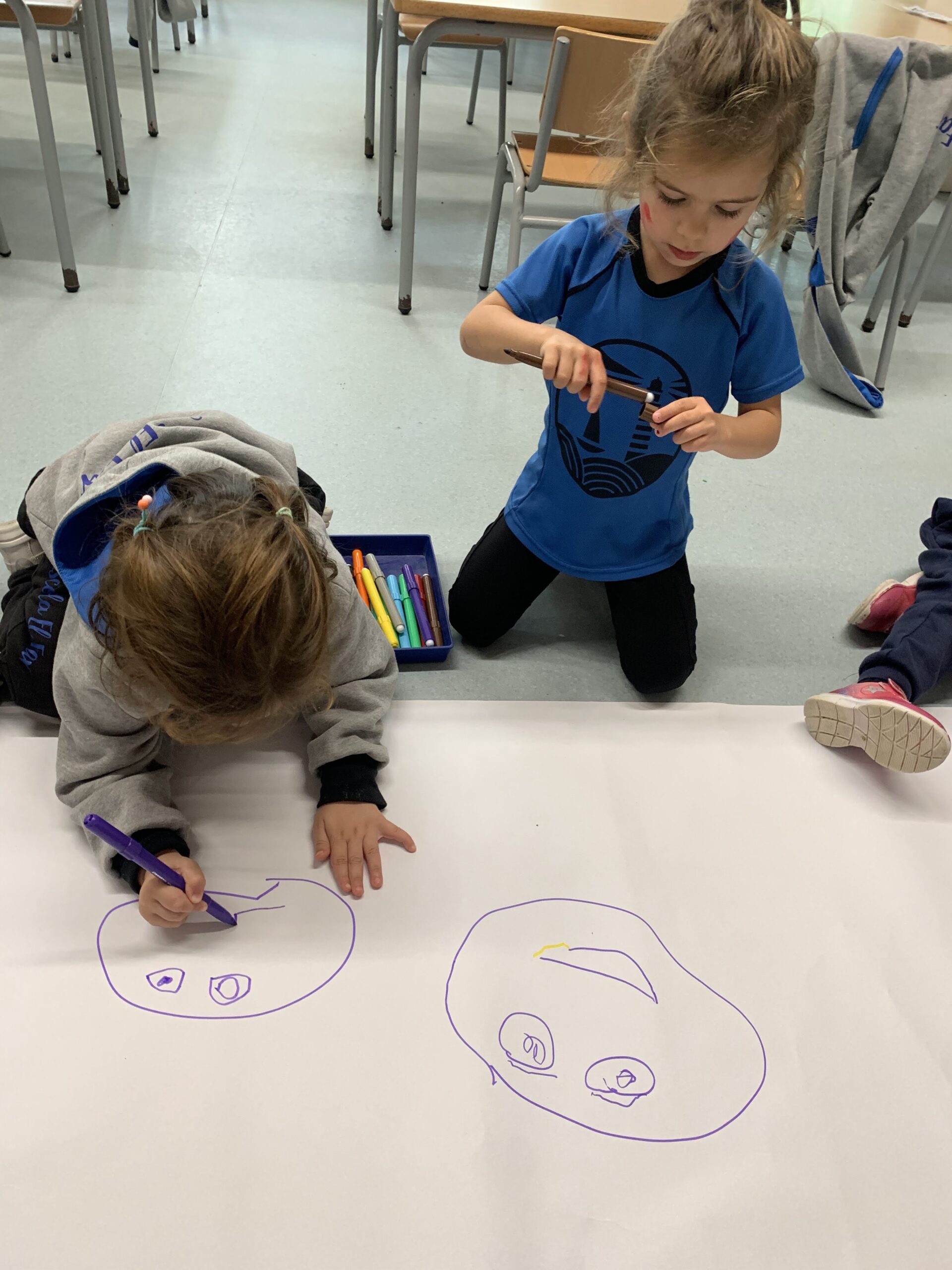 Hem començat per aprendre les parts de la cara. Ens agrada molt fer jocs, cantar cançons, fer cares a la pissarra, amb pedretes, enganxar-ne parts…..