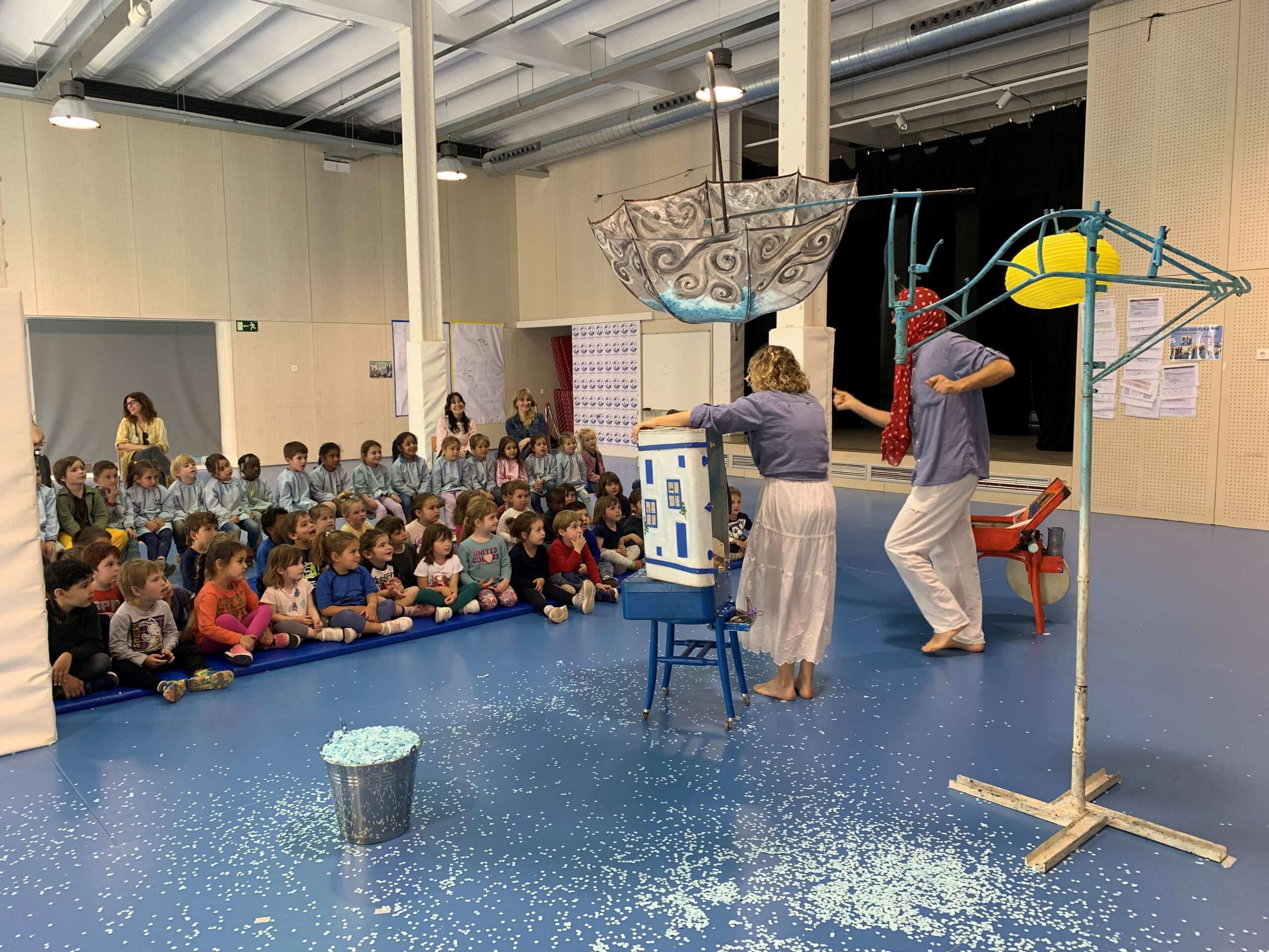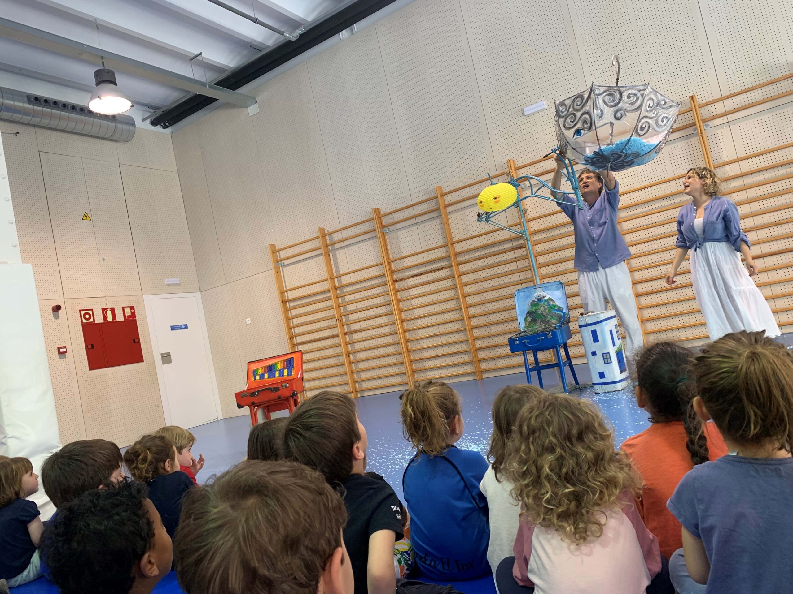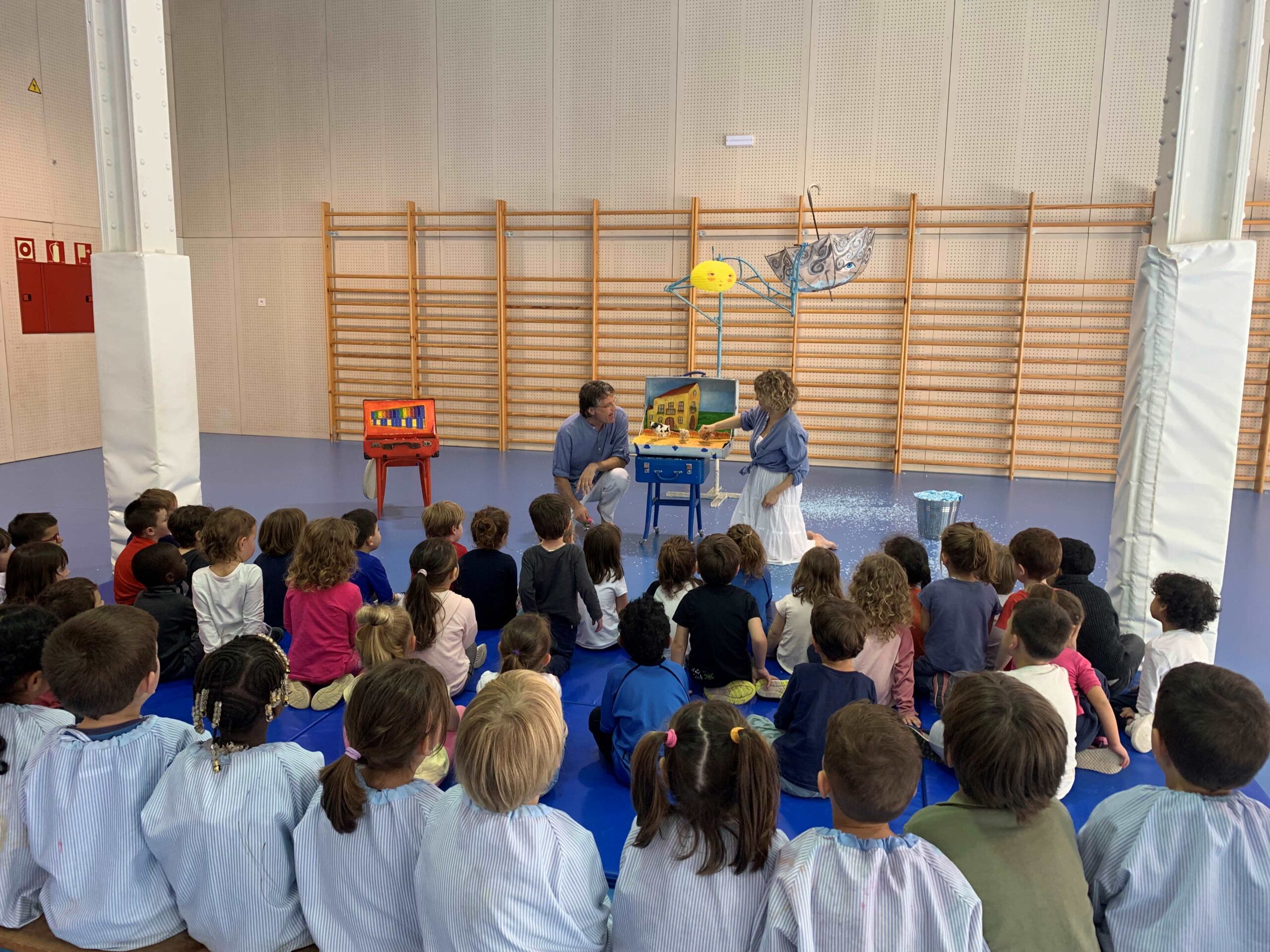 Aquest matí la companyia de Teatre el Detall, amb en Xavi i la Txell ens han explicat un conte preciós: El núvol gris, gras i gros.