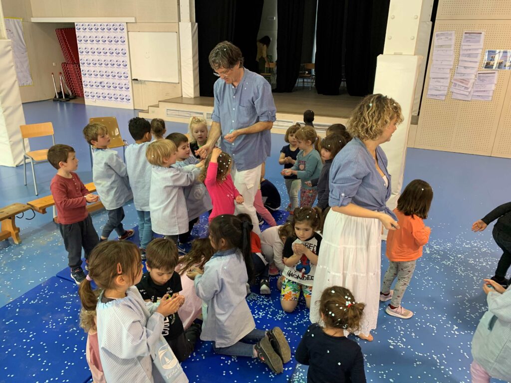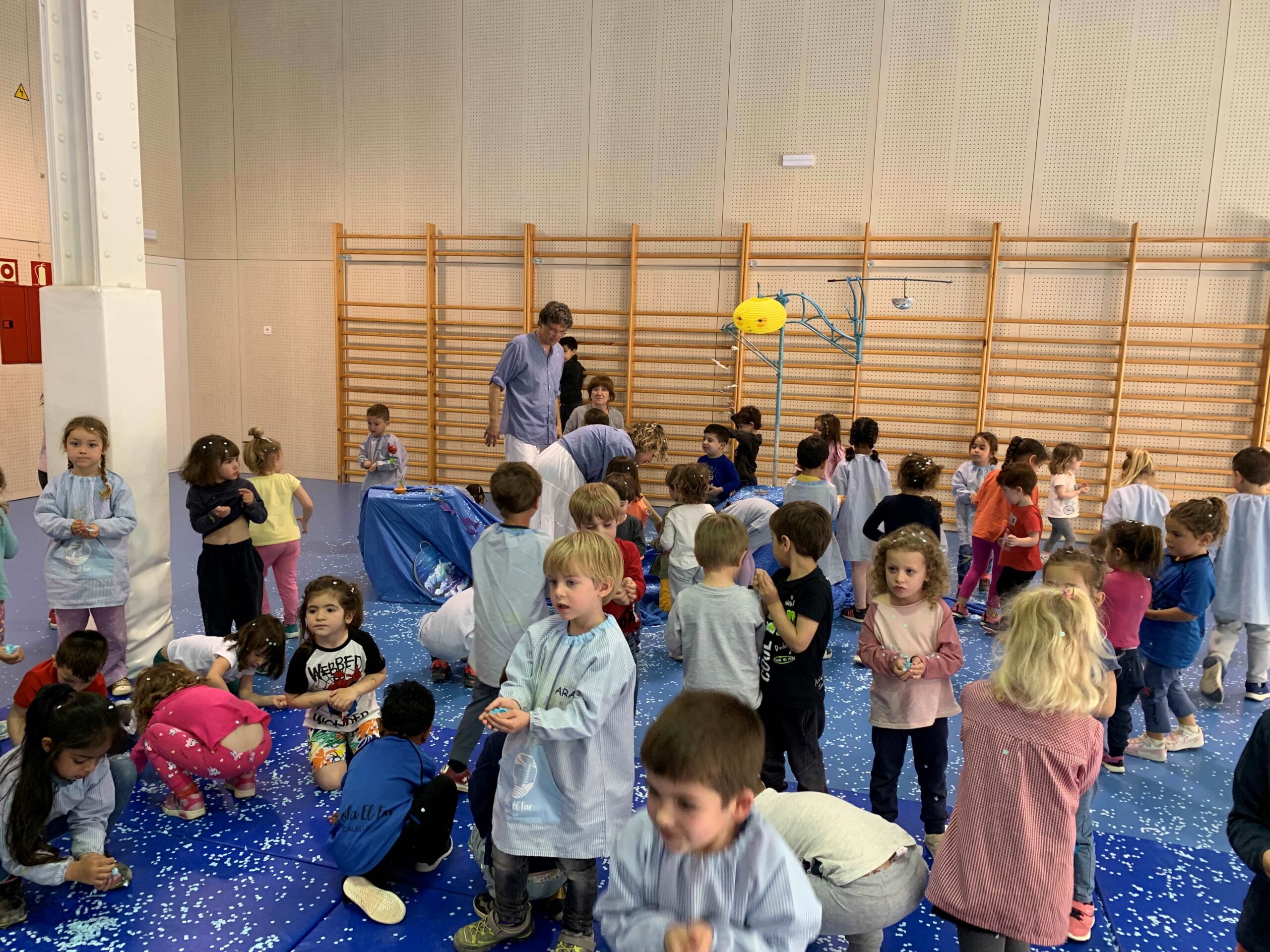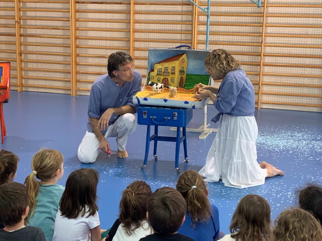 Aquest matí la companyia de Teatre el Detall, amb en Xavi i la Txell ens han explicat un conte preciós: El núvol gris, gras i gros.