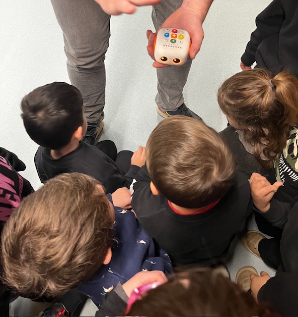 A la classe d’I4 hem iniciat una activitat de robòtica amb el robot Tale-Bot. Abans de fer-lo servir, hem treballat els moviments amb el propi cos (endavant, girar, enrere…) amb cèrcols de psicomotricitat. Després, hem ajudat el Tale-Bot a seguir diferents recorreguts. Ha estat una experiència molt divertida que ens apropa al pensament computacional.
