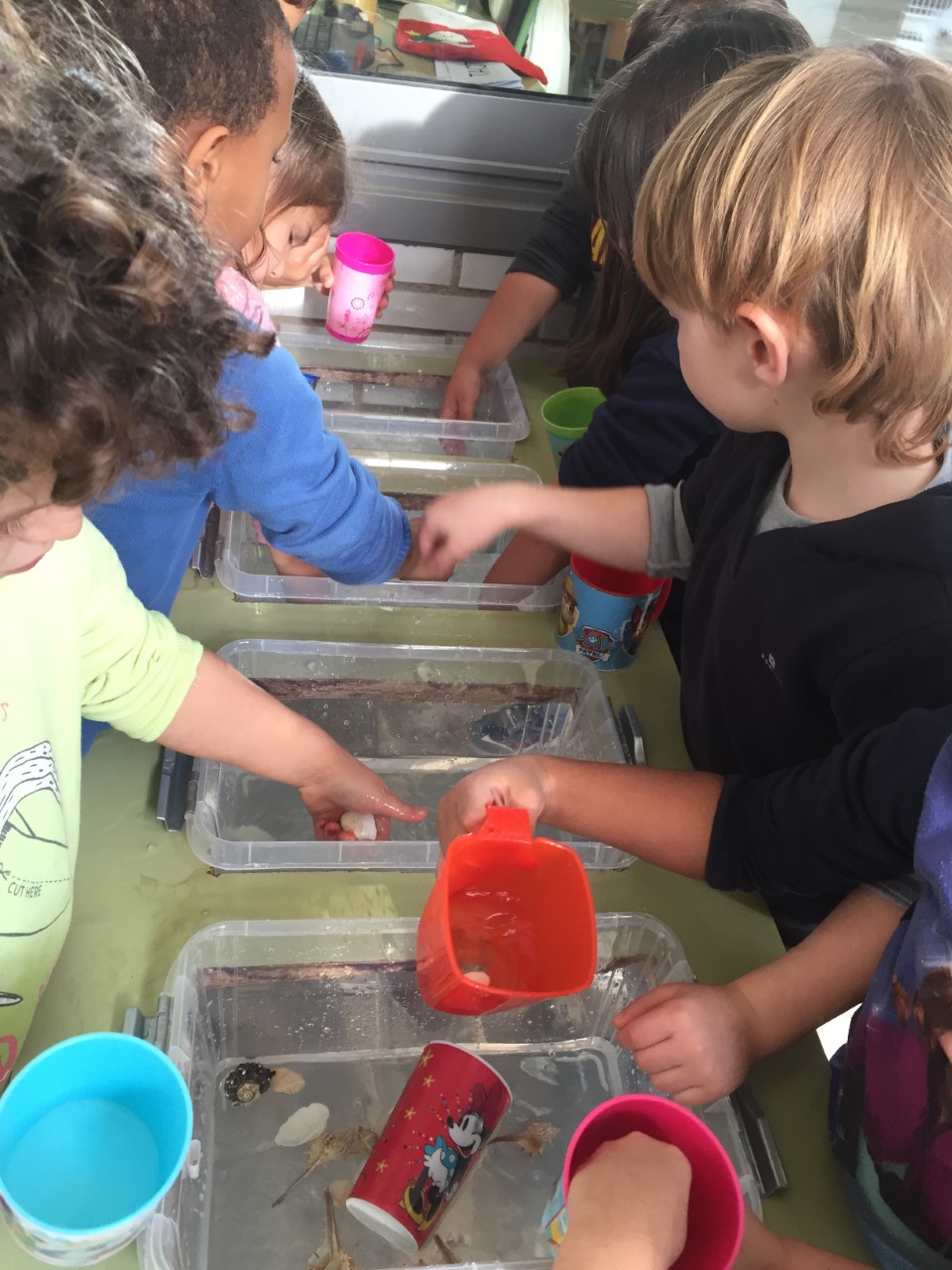 Treballem l’aigua , les seves qualitats i capacitats, transformació de sòlid a líquid , transformació del color, objectes que suren i que s’enfonsen, bombolles d’ aigua i sabó…. tot a través de l’experimentació.