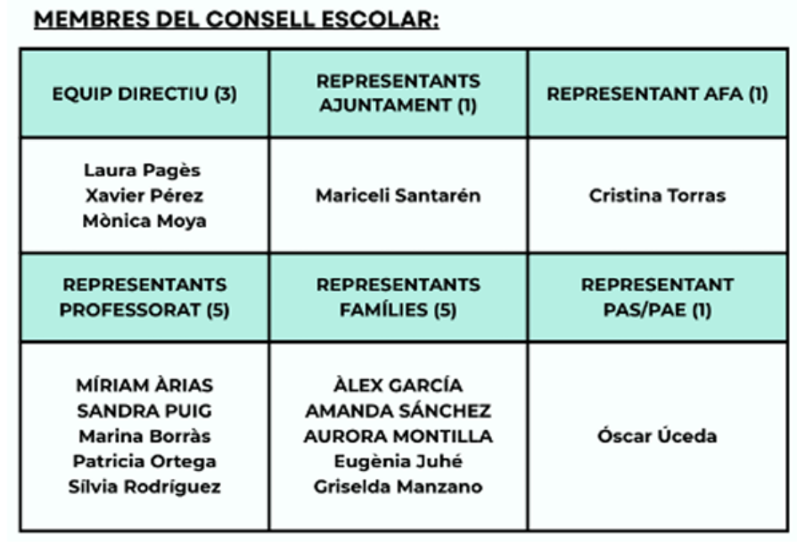 MEMBRES CONSELL ESCOLAR ESCOLA EL FAR