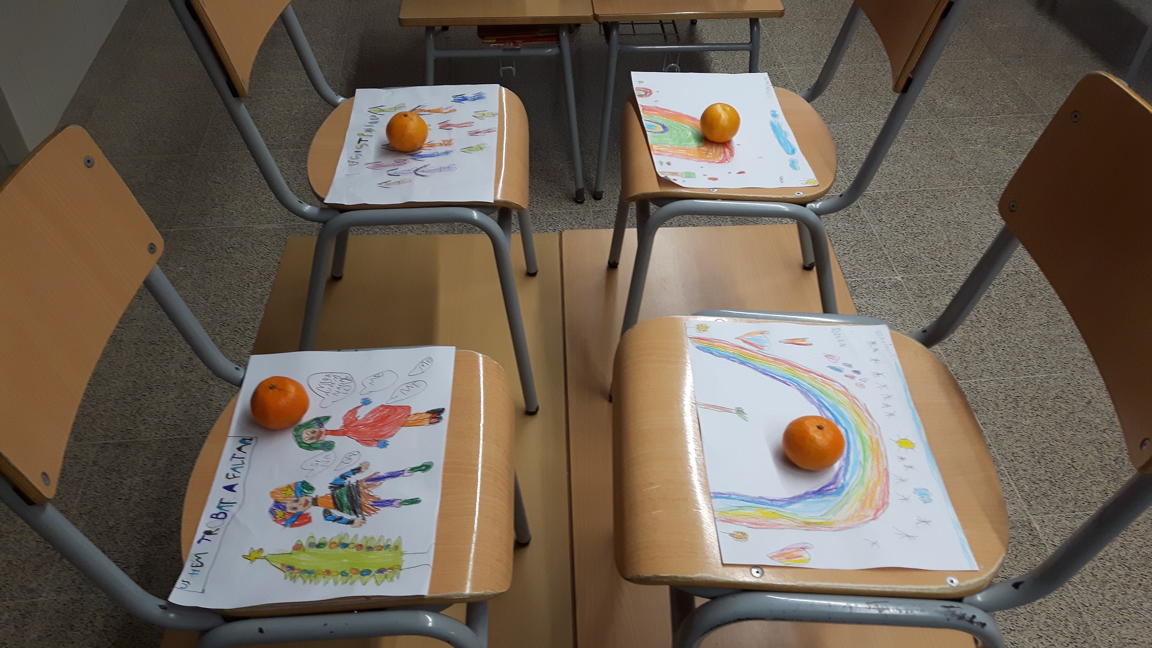Avui, després de 10 dies de confinament, els nens i nenes de 1rA ens hem retrobat amb molta il.lusió. Mireu, quina bonica sorpresa ens esperava! Cada nen/a ha trobat a la seva cadira un bonic dibuix fet pels seus companys i companyes de 1rB que han preparat amb molta estima, amb missatges que arriben al cor. Què bonic ha estat veure els missatges donant-nos la benvinguda i fent-nos saber que ens han trobat a faltar! MOLTÍSSIMES GRÀCIES A TOTS/ES.