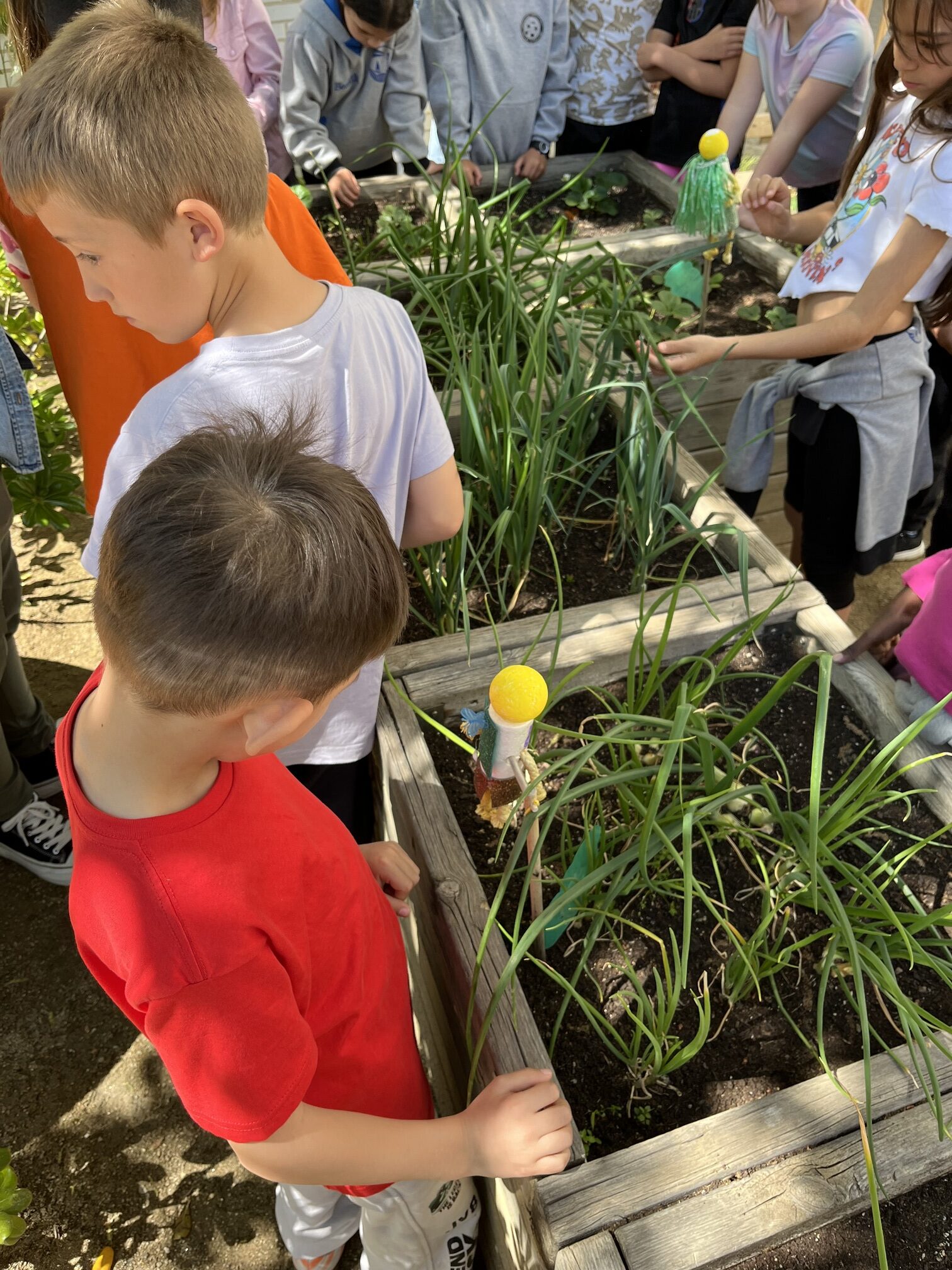 Per començar, hem visitat les plantes de l’hort on hem pogut diferenciar entre herbes, arbustos i arbres, així com, que hi ha plantes que es mengen i d’altres que no. A més a més, ens hem adonat que ens mengem diferents parts de les plantes. D’algunes ens mengem les fulles, d’altres, els fruits o, les arrels.