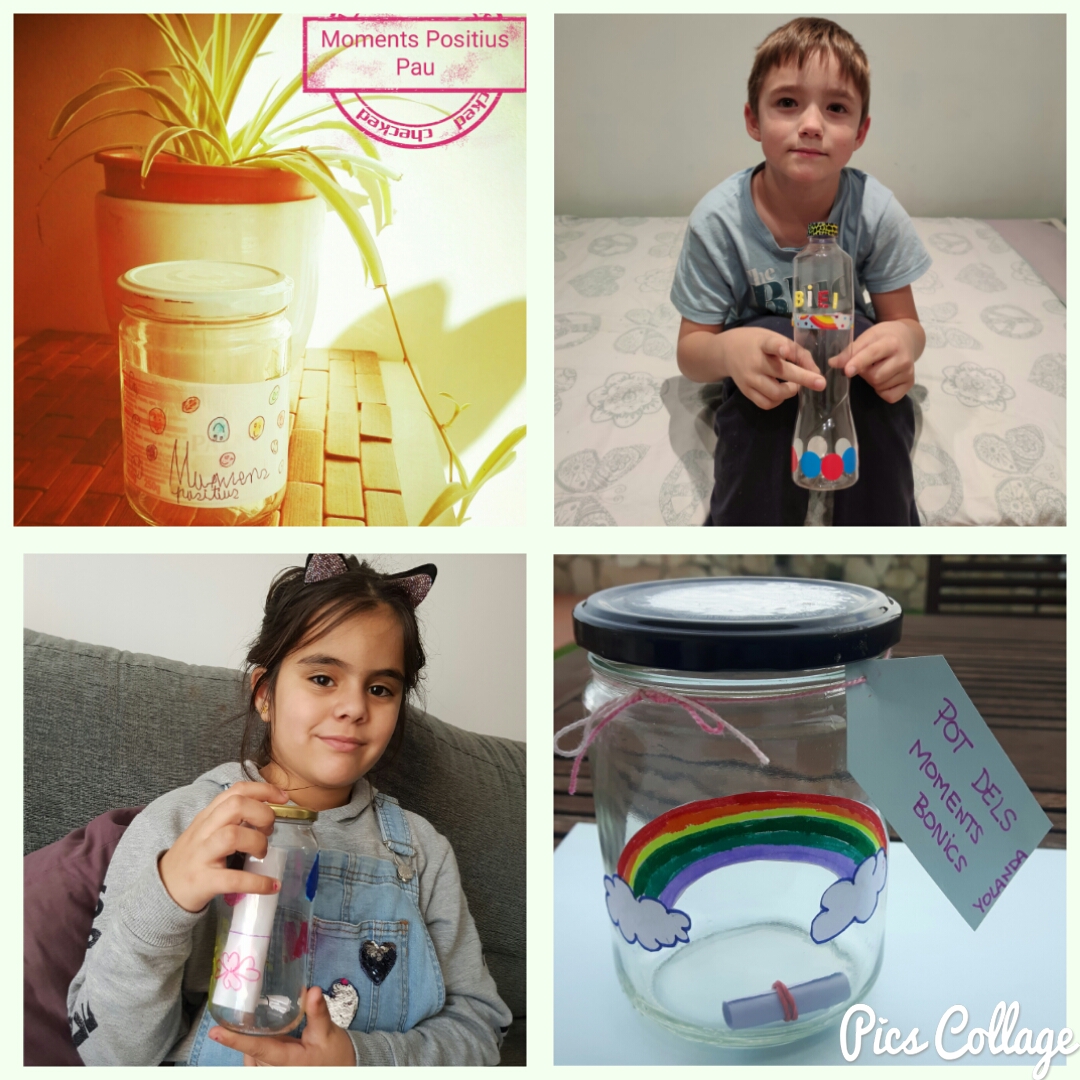 El pot dels moments bonics vol desenvolupar el pensament positiu dels infants i, valorar i agraïr les petites coses. Cada dia, hauran d’escriure en un paper (es pot utilitzar papers de diferents colors) el seu moment bonic d’aquell dia, enrotllar-lo i posar-lo dins el pot. Sempre que vulguin, poden obrir-lo i llegir tots aquells moments què, en el seu dia, el van fer feliç.