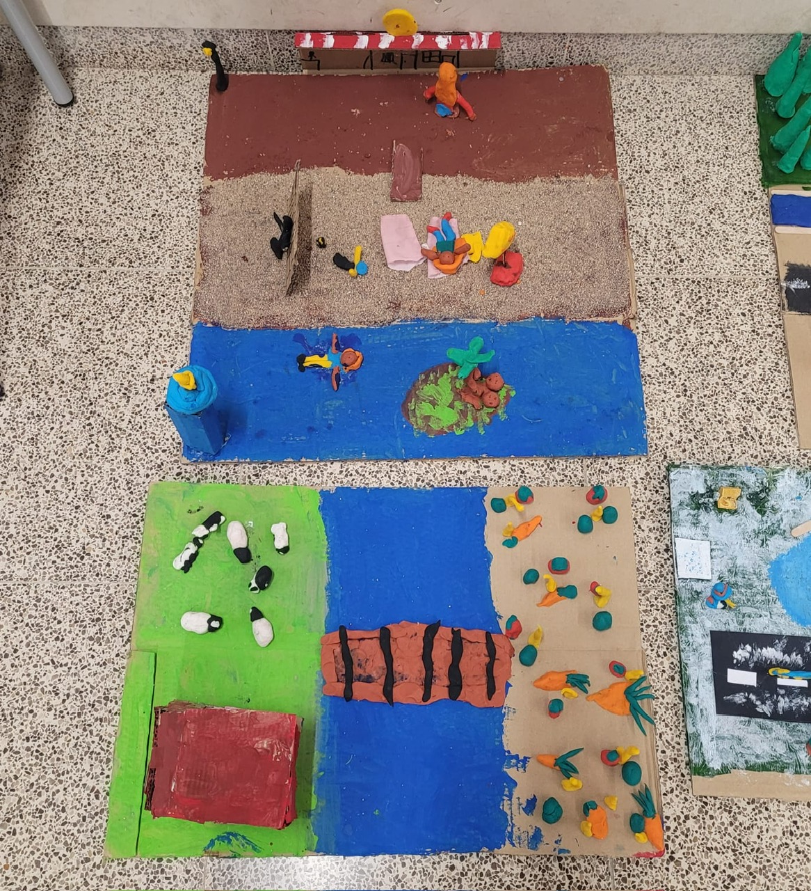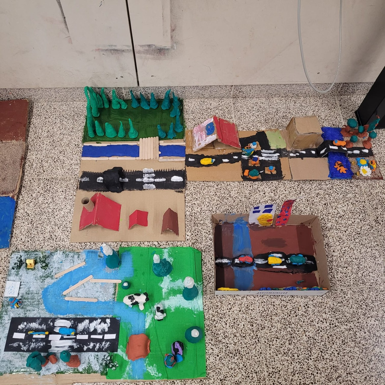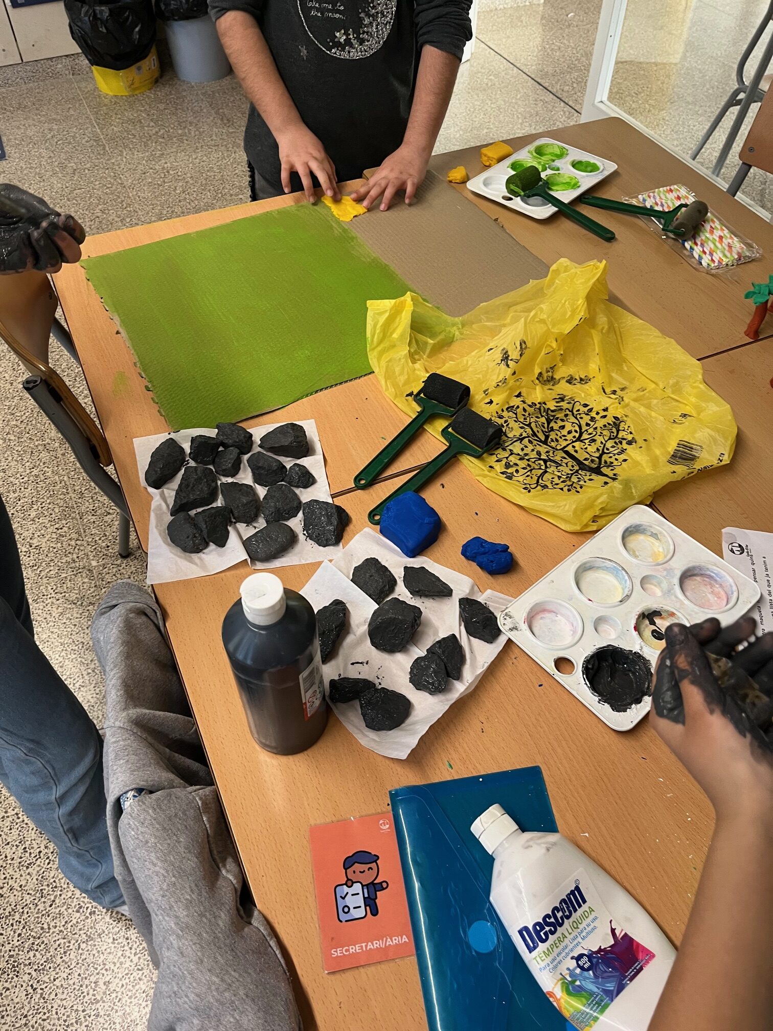 Entre tots els membres de l’equip hem portat diferent material i hem dissenyat el paisatge. Una vegada l’hem acabat l’hem compartit amb la resta de companys i companyes explicant com l’hem fet i com ens hem organitzat.