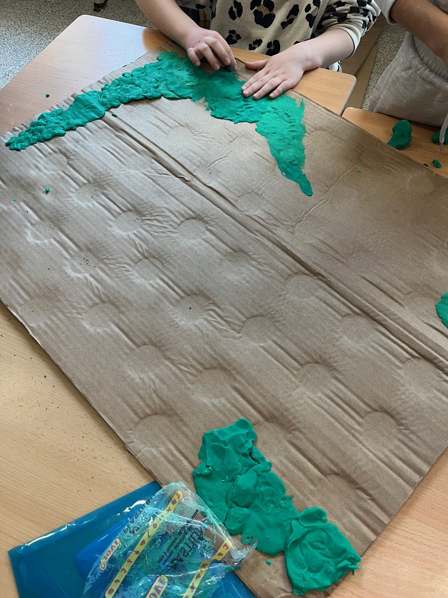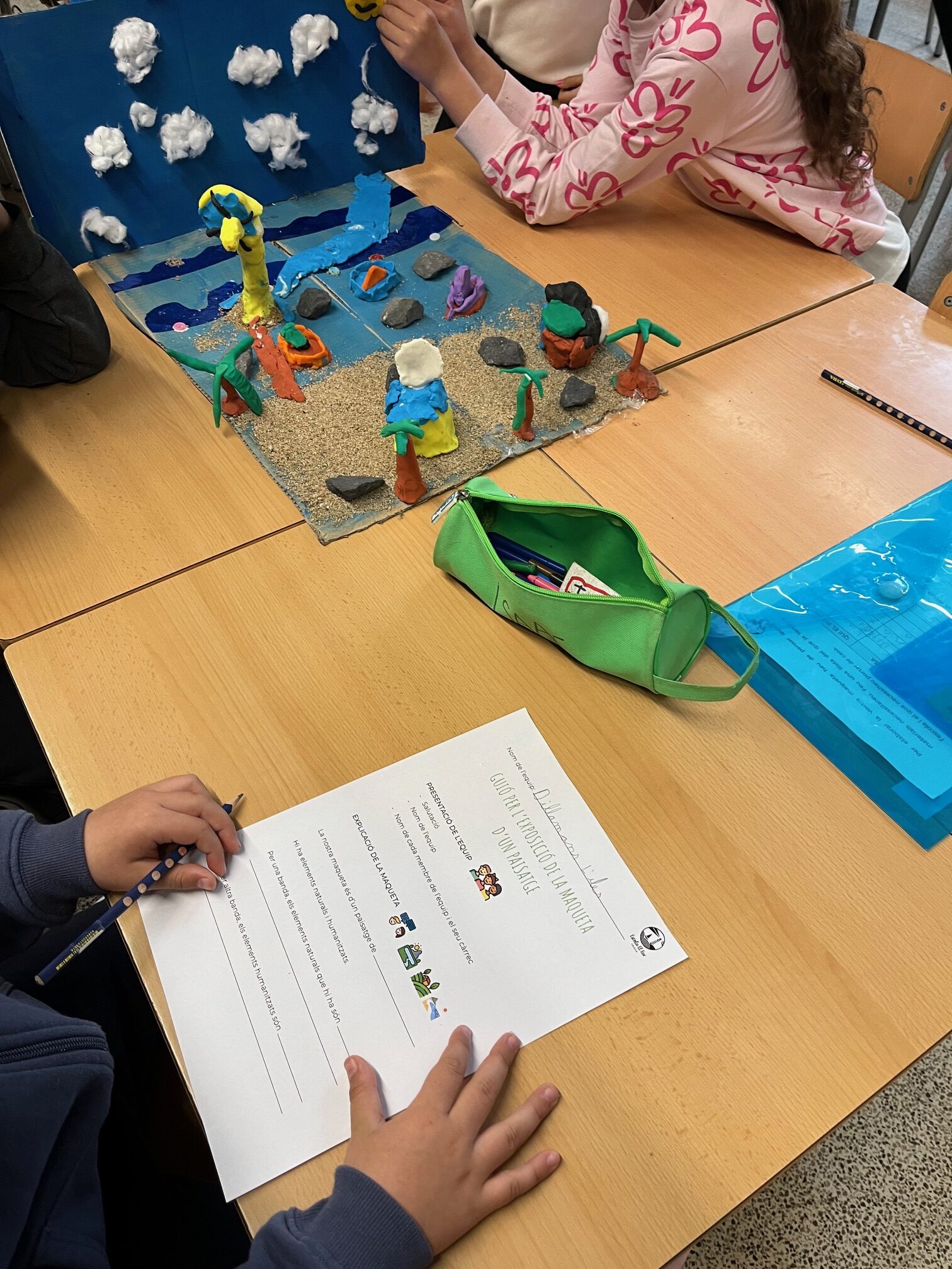 A segon hem descobert els tipus de paisatge que hi ha a Catalunya: de costa, de muntanya i de plana. Una vegada hem tingut clar quins elements formen part de cadascun d’ells, en equips cooperatius hem elaborat una maqueta d’un dels paisatges i l’hem representat amb tots els detalls.