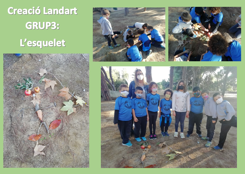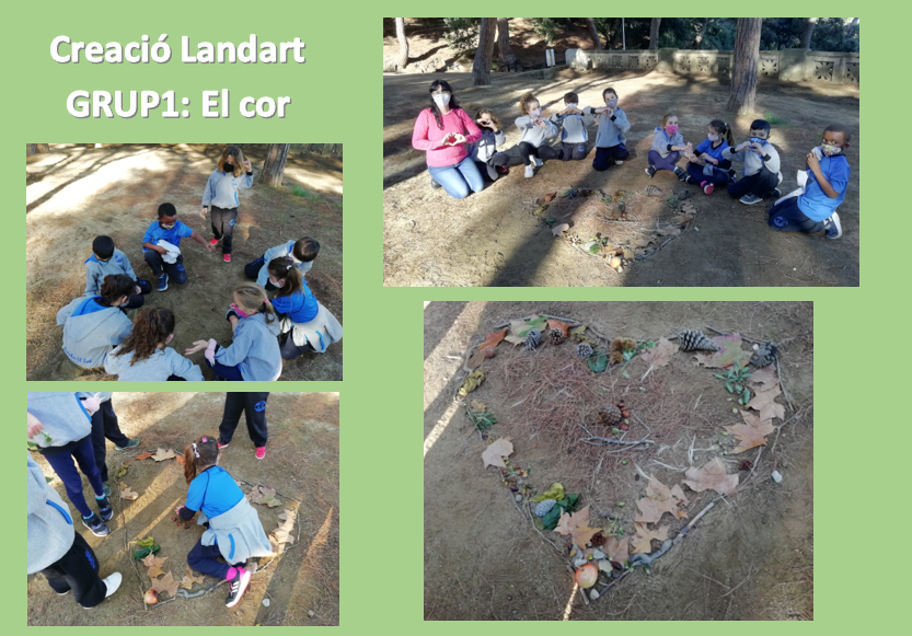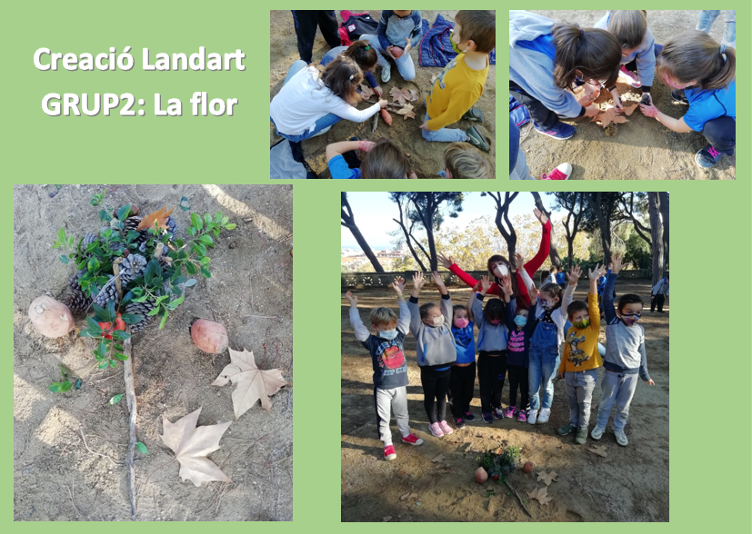 I quina sort tenim de poder gaudir molt a prop de l’escola del nostre fantàstic entorn natural: el Pati de l´Ós del Parc Dalmau. Poder observar els diferents colors de la tardor, manipular diferents elements i olorar-los, ens ha fet passar una tarda de dimarts de tardor ben distreta i divertida. Per grupets hem fet “creacions de Landart” a partir dels elements naturals que teníem i dels que hem trobat. La paraula Landart és una corrent d’art que utilitza el paisatge natural i els elements de la natura com a base per les seves creacions. De tornada a l’escola hem tingut la sorpresa de veure la Maria Castanyera que ens esperava per saludar-nos i desitjar-nos una bona castanyada.