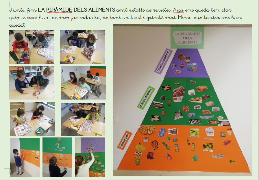 Identificar la importància dels aliments, què aporten, la regularitat amb què s’han de prendre i els àpats que es fan diàriament.