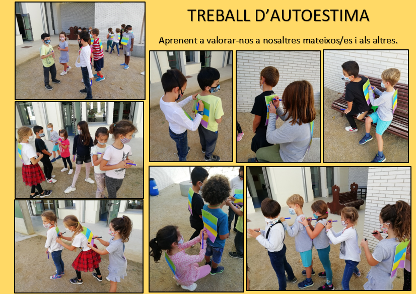 Avui, a l’hora de valors, hem fet una dinàmica per treballar l’AUTOESTIMA. Què important és valorar-nos a nosaltres mateixos/es i a la vegada valorar als altres! Aquests primers dies d’escola estem treballant les emocions i cuidant-nos uns als altres. Hem gaudit moltíssim de l’activitat a l’aire lliure, compartint adjectius positius pels nostres companys i companyes de l’aula! Quina sorpresa quan hem llegit cada un de nosaltres el que ens han escrit els altres! Ens hem emocionat!
