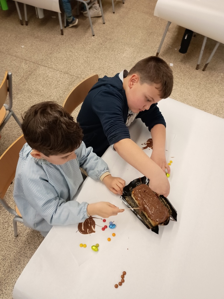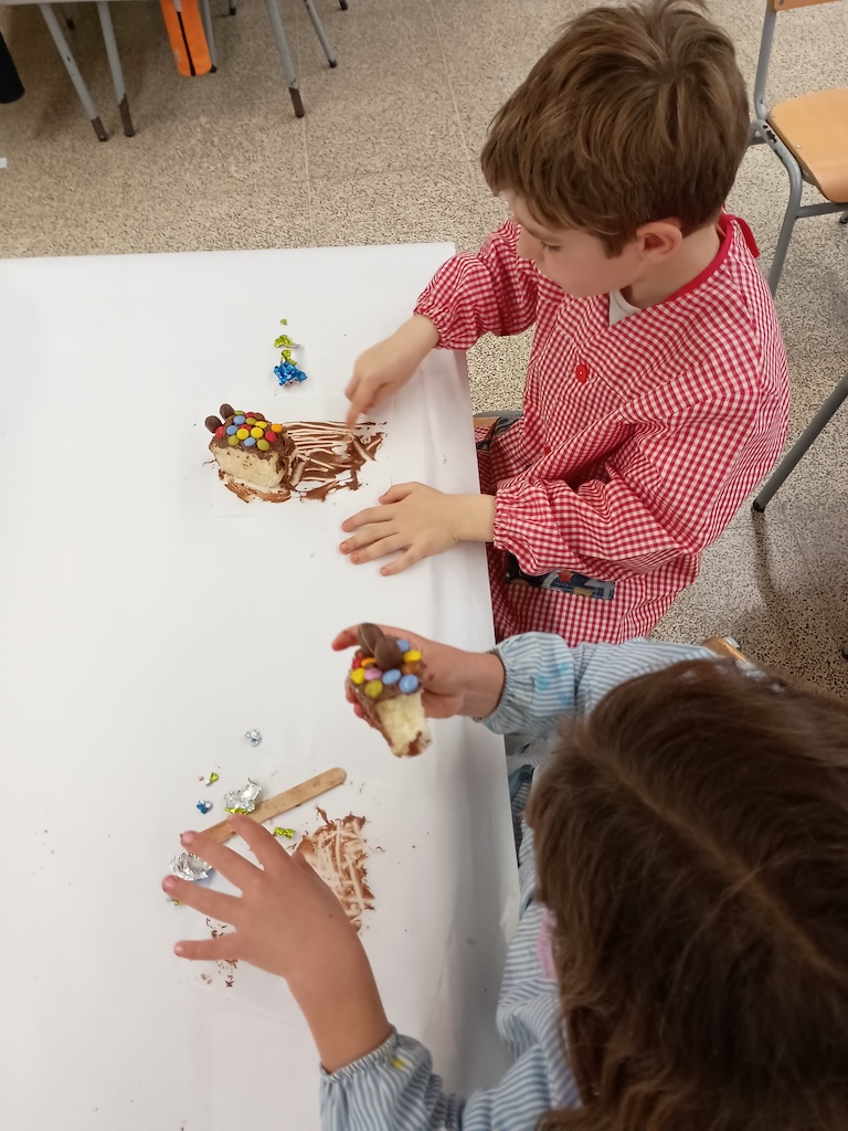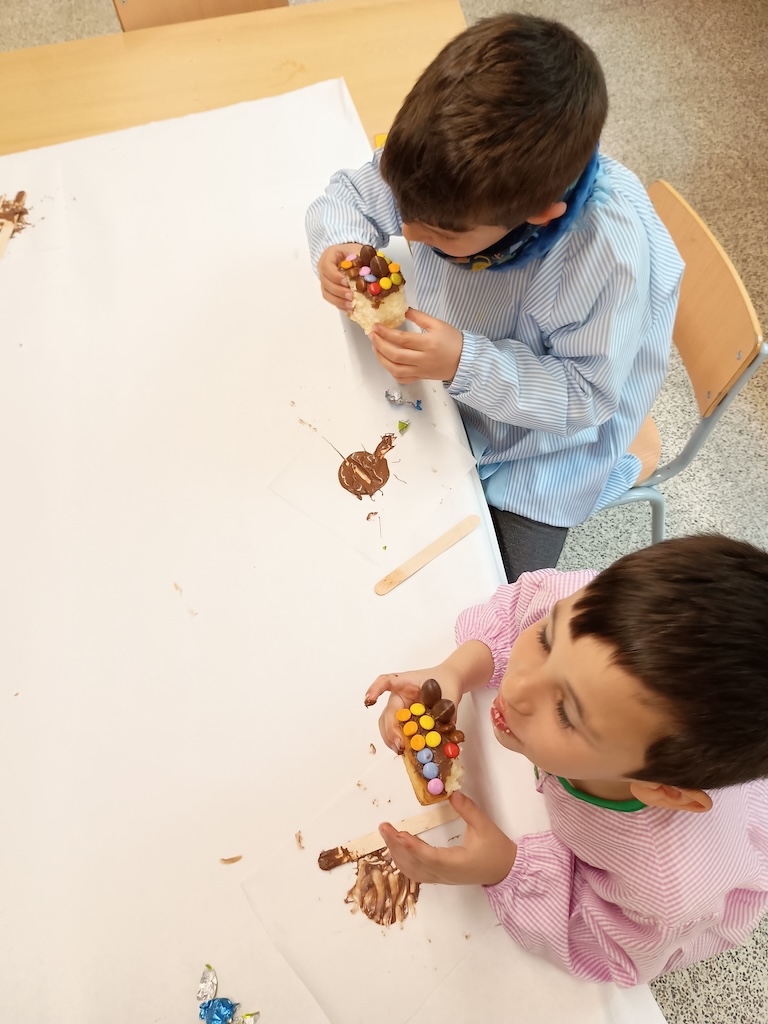 Després de deixar volar la nostra creativitat, hem pogut gaudir d’un berenar compartit amb el grup classe, degustant les nostres pròpies mones en un ambient ben relaxat.