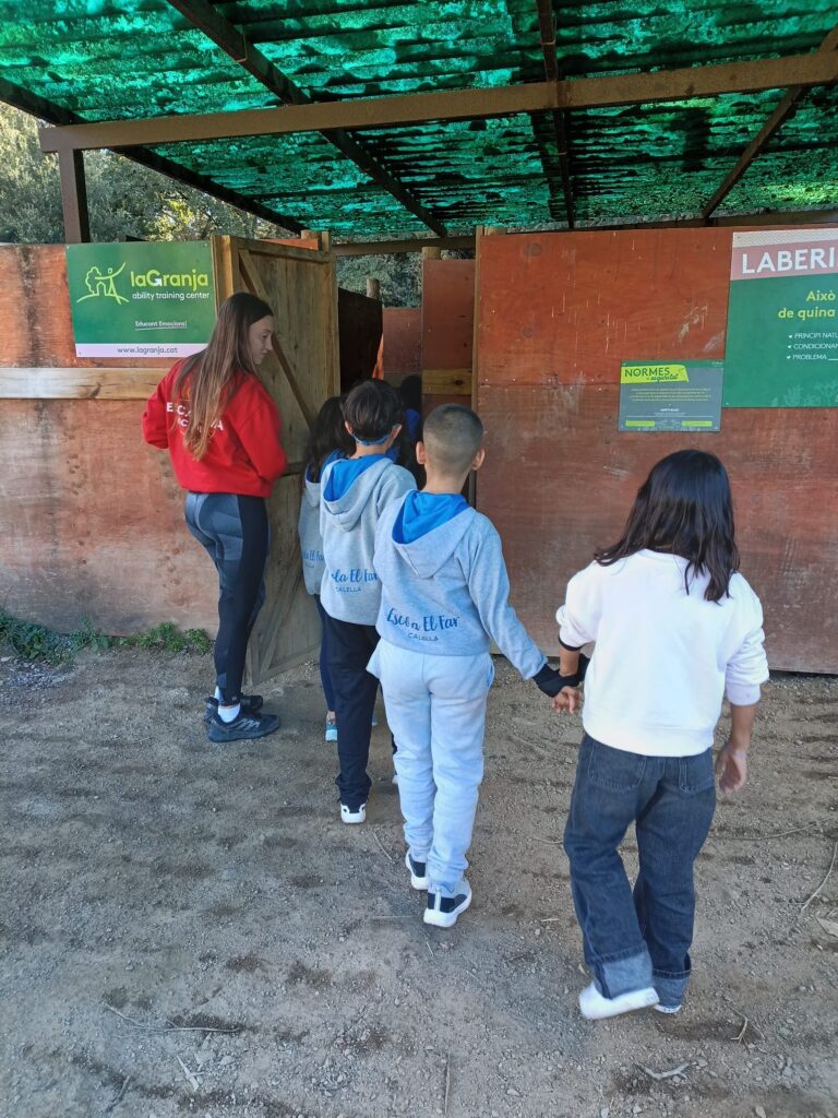Finalment, també vam entrar al laberint, un repte d’autonomia i cohesió d’equip. Primer hi vam entrar per parelles, buscant junts la sortida. Després, tot el grup hi va entrar alhora per amagar-se de les mestres i col·laborar. Vam comprovar que quan treballem junts i ens cuidem, tot és més fàcil i divertit.