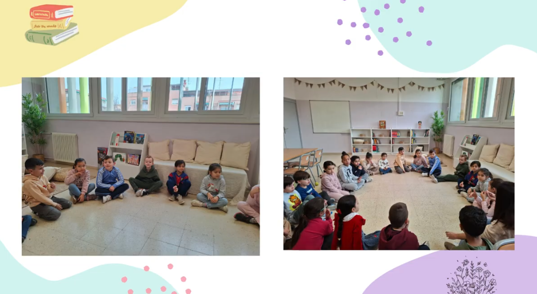 Els nens i nenes de 1r gaudim de la lectura a la nova biblioteca de l’escola.