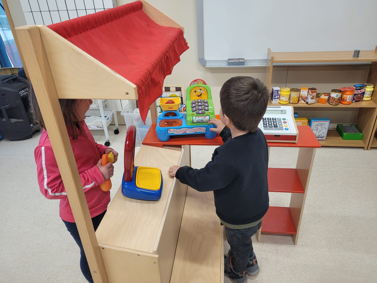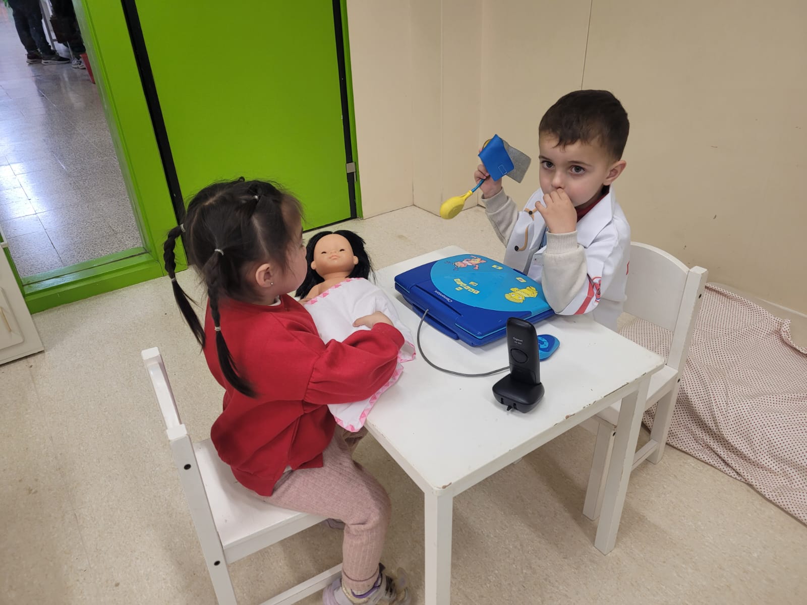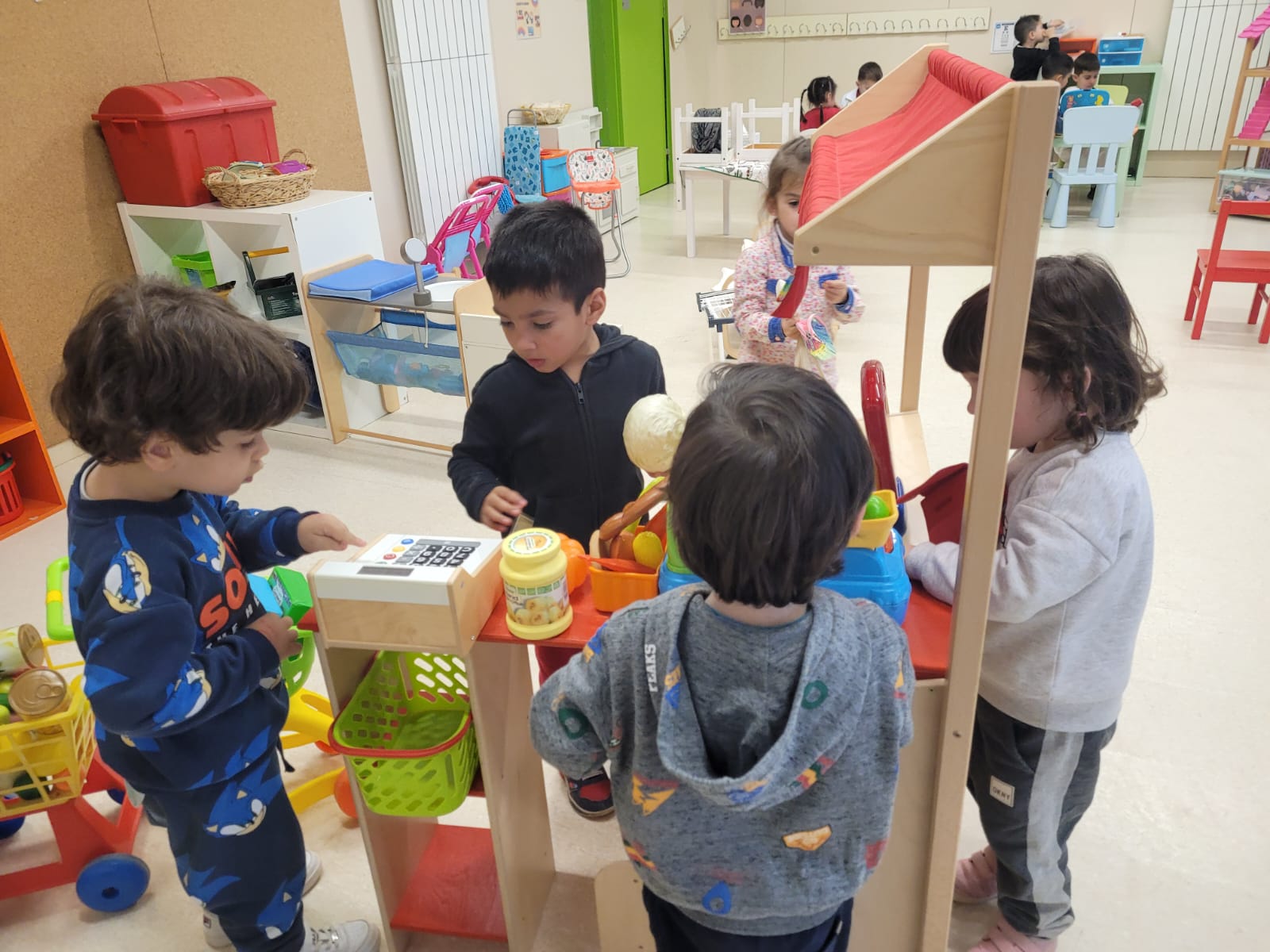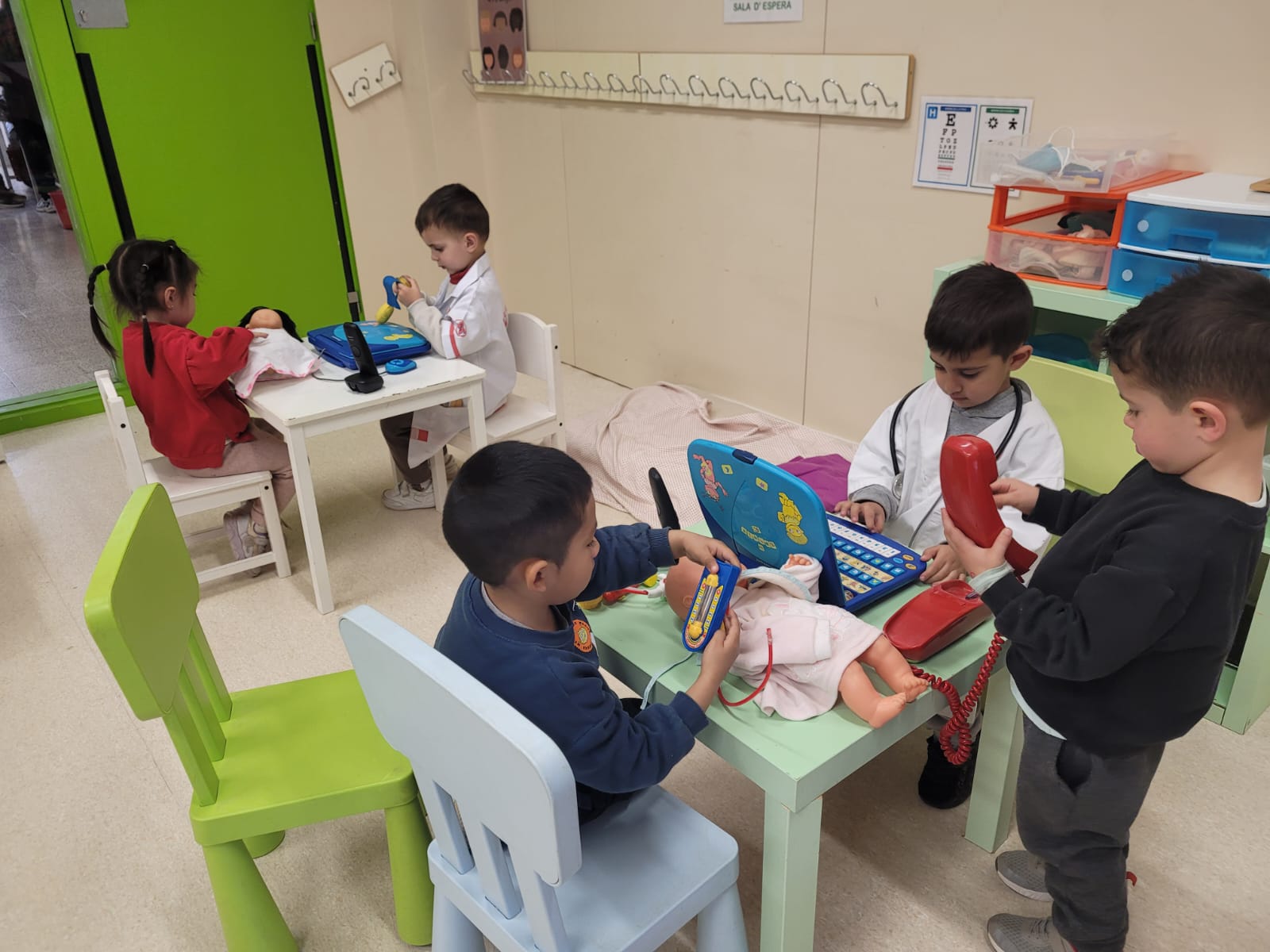 A l’escola disposem d’una aula destinada, principalment, al joc simbòlic. En ella podem trobar diferents racons de joc com poden ser: el restaurant, la botiga, la caseta, l’hospital,…