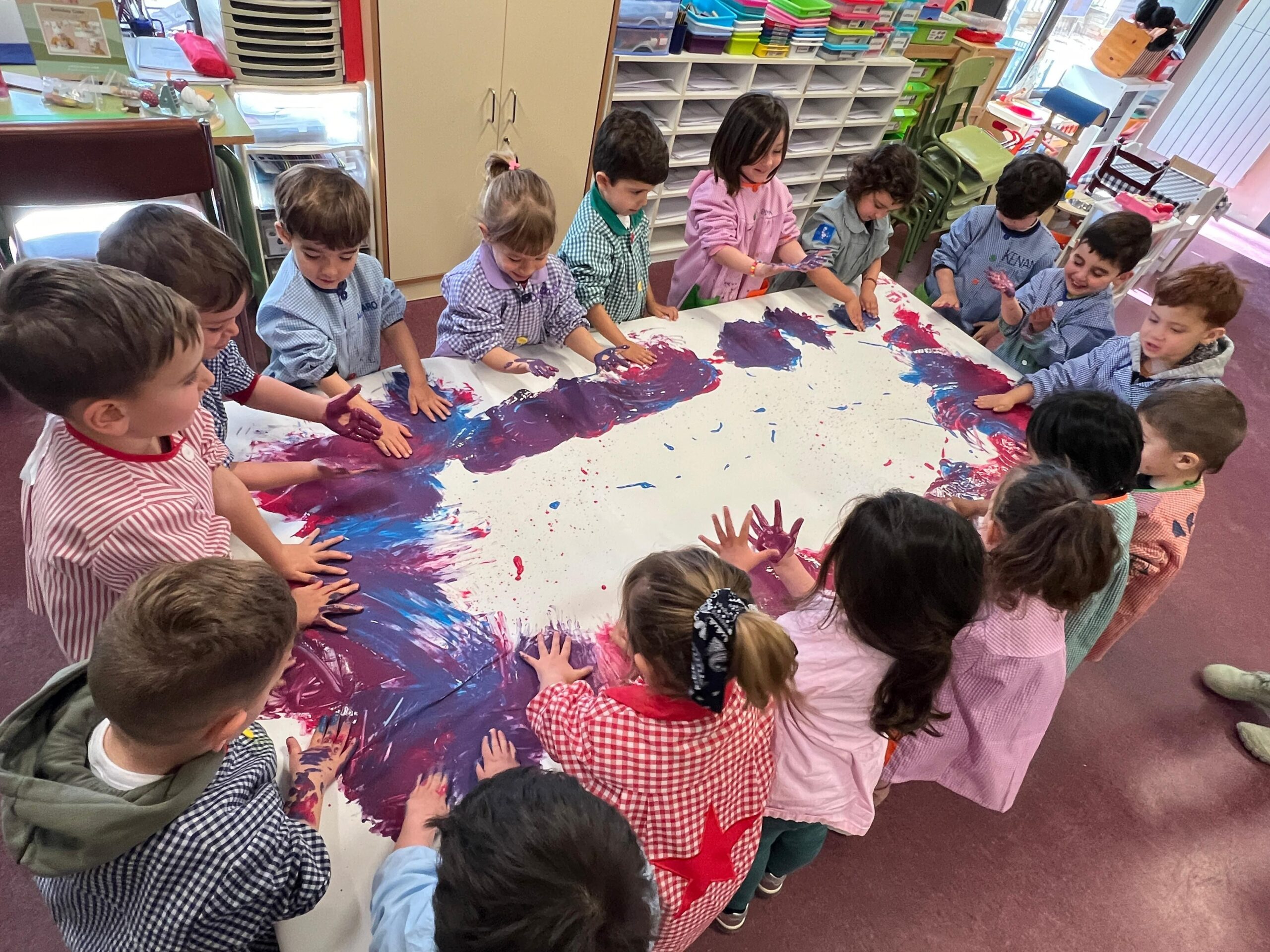 Avui divendres 8 de març, per celebrar el dia de la dona, hem creat el color lila amb els infants d’I3. Com a representació d’aquest dia, hem fet una experimentació mitjançant la barreja de dues pintures, la de color blau i la de color magenta.