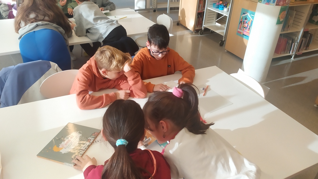 A quart hem començat a treballar la poesia, un gènere literari que ens permet transmetre sentiments, emocions i reflexions a través dels versos que anem creant. Per aquest motiu hem anat a visitar la biblioteca Esteve Paluzie i hem fet un taller del qual hem gaudit molt. Per grups hem mirat diferents llibres de poesia i hem buscat les que ens transmetien sensacions d’un dels cinc sentits. Hem triat una de les poesies, ens ha costat molt decidir-nos perquè eren moltes les que ens