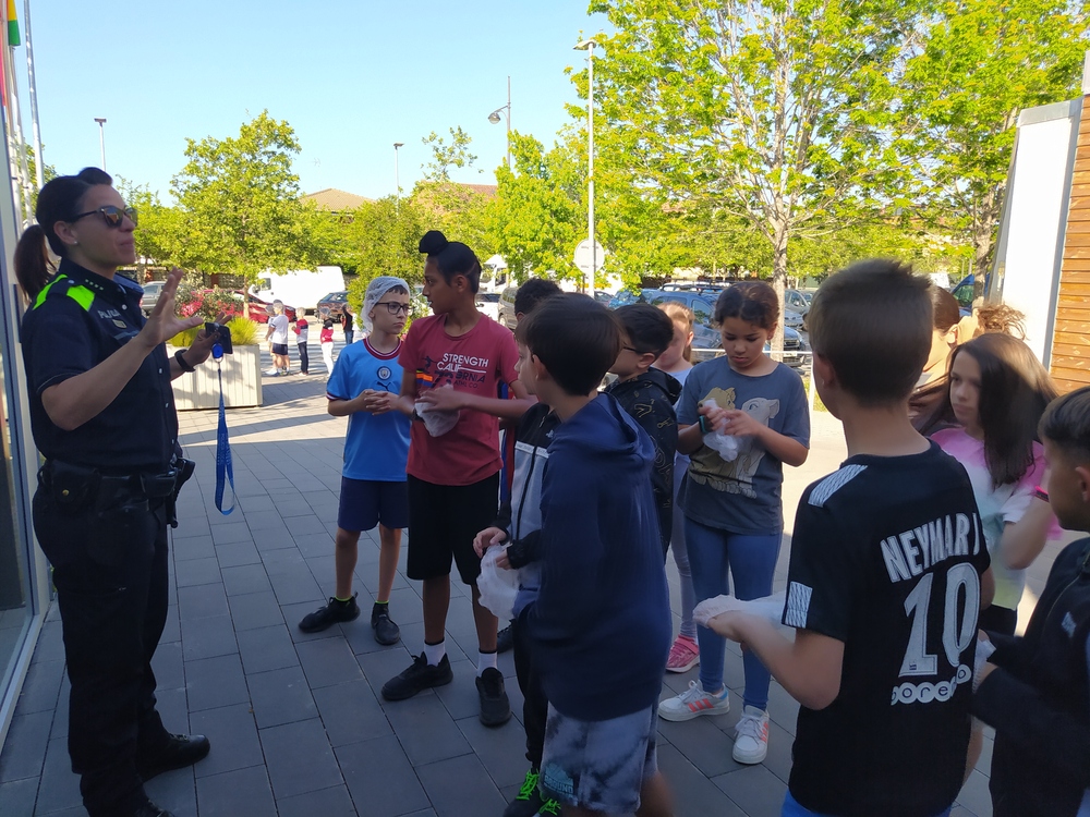 Les nenes i els nens de 5è hem anat a posar en pràctica els coneixements que vam aprendre amb els policies locals de Barberà del Vallès, en Jorge i la Jenni, conduint per un circuit amb Karts. També hem aprofitat per fer una visita de les instal·lacions de l’edifici de la policia local del nostre municipi, hem conegut a diferents agents i hem manipulat el seu uniforme.