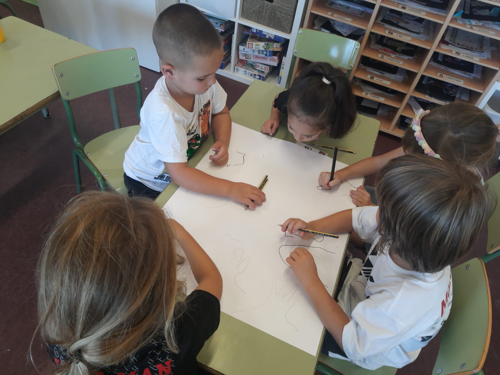 El funcionament de l’activitat ha estat la següent: Cadascú tria el color més adequat a la seva tonalitat. Després, en grups de treball, els dibuixos es comparteixen per fomentar el treball cooperatiu. A continuació, s’ha fet una reflexió sobre les observacions dels colors de pell. En una segona fase, s’ha desenvolupat un treball col·lectiu en que cada grup ha col·locat els dibuixos segons una classificació cromàtica.