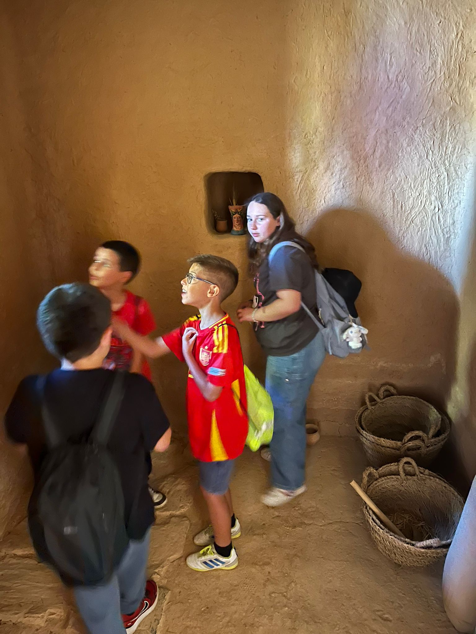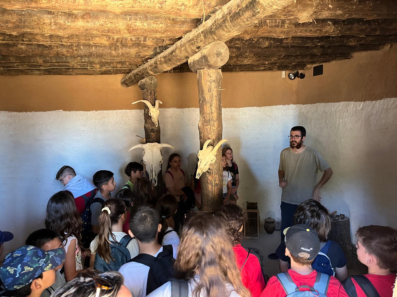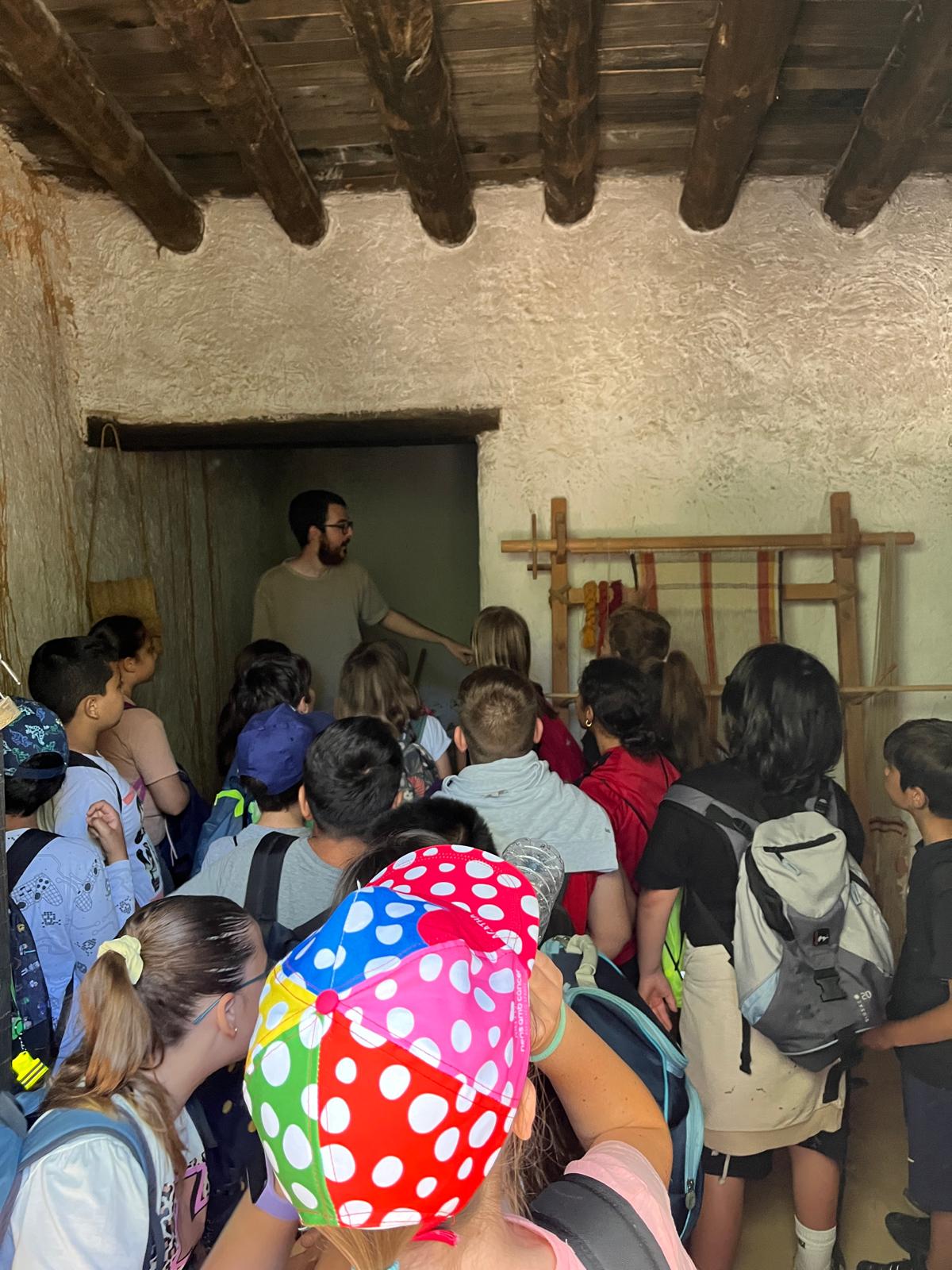 L’altra part de la visita consistia en fer una ruta per les restes del poblat ibèric de Can Olivé. Vam poder caminar entre les estructures originals i visitar les reconstruccions de les cases tal i com eren en tres etapes diferents de la civilització ibèrica. A més, vam visitar el museu, on vam veure peces trobades a la zona i vam conèixer més detalls sobre la vida quotidiana dels ibers: els seus costums, les eines que utilitzaven, les seves creences i com s’organitzaven com a societat.