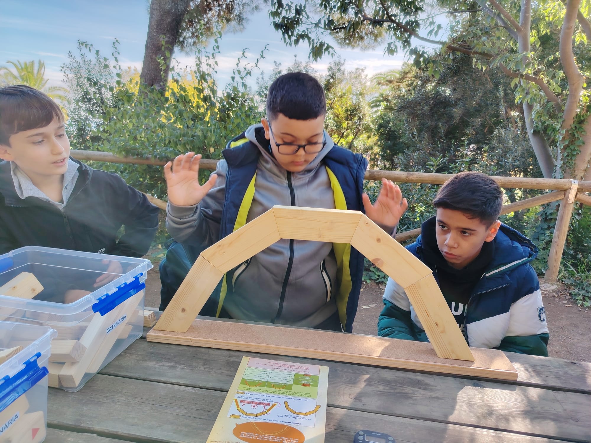 L’última activitat la van conduir uns joves arquitectes i enginyers de la universitat. Ens van explicar la diferència entre un arc en semicercle i un arc en catenària, i vam construir el nostre propi arc per veure com funcionava. També vam descobrir que Gaudí utilitzava cadenes per estudiar la forma dels arcs dels seus edificis. Va ser molt sorprenent veure com la ciència, l’art i l’arquitectura estan tan connectats!