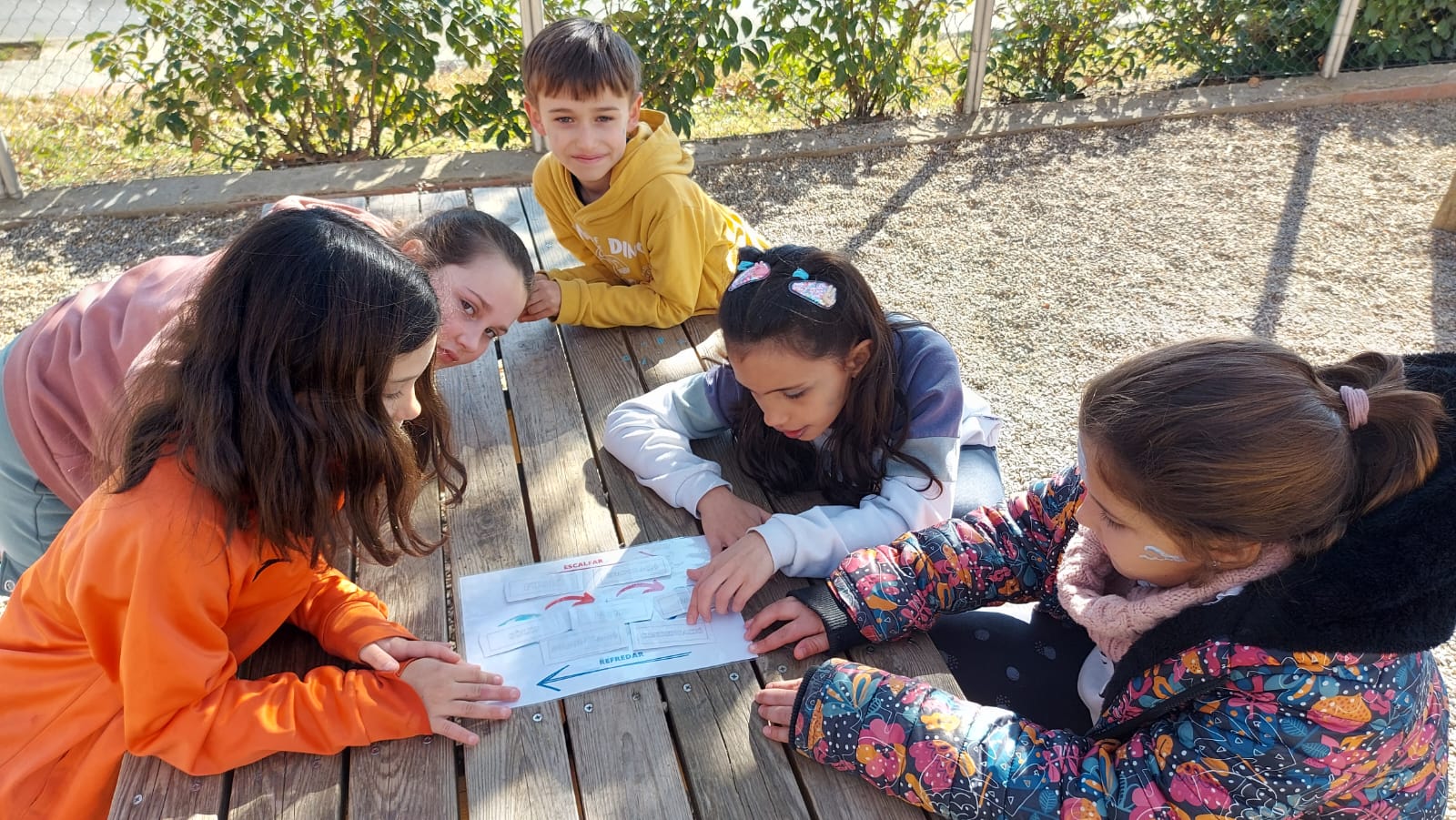 1. Taller de moviment: cerca de pistes a l’exterior per resoldre un joc sobre els estats de l’aigua