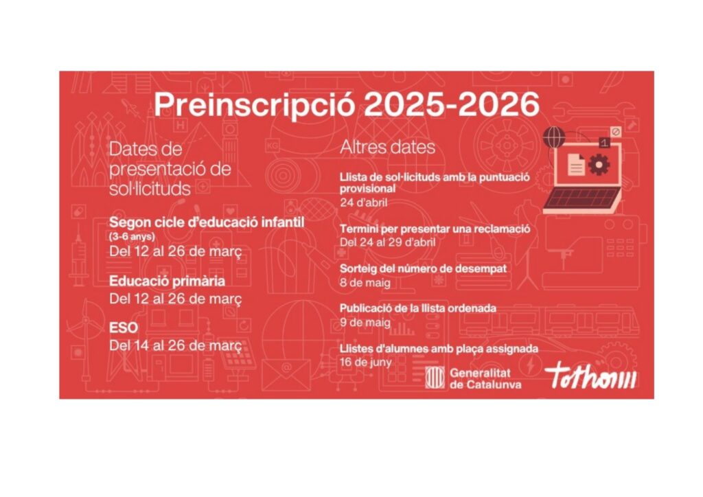 Us informem que de cara a la preiscripció del curs 2025-26 tindreu a la vostra disposició un punt de suport […]