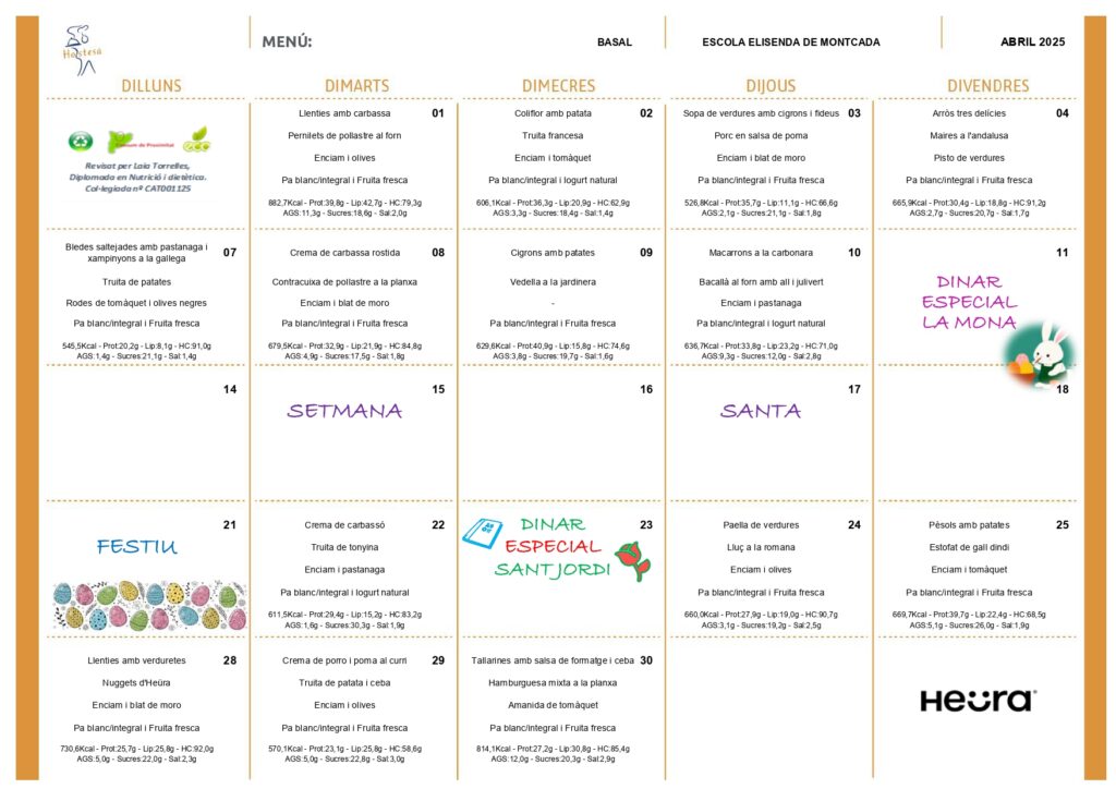 Menús del mes d’abril
