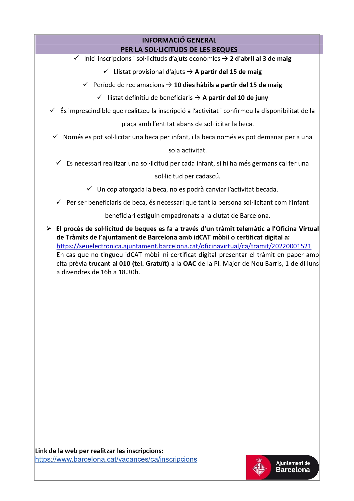 L’últim dia per demanar la beca i fer la preinscripció és el 3 de maig