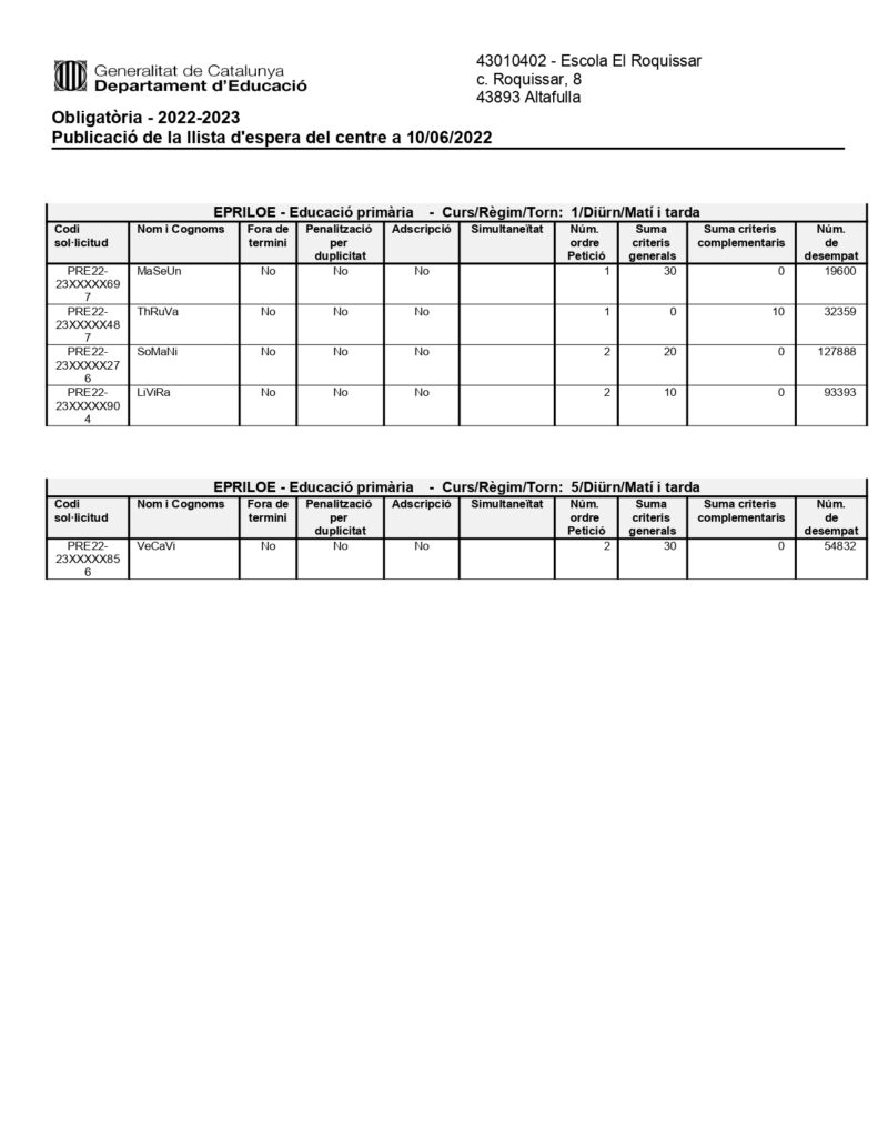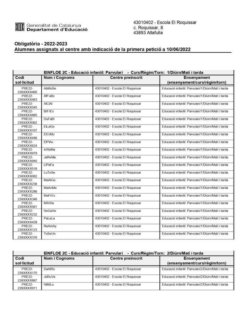 Publiquem els llistats d’assignacions dels alumnes pel curs 2022/2023.